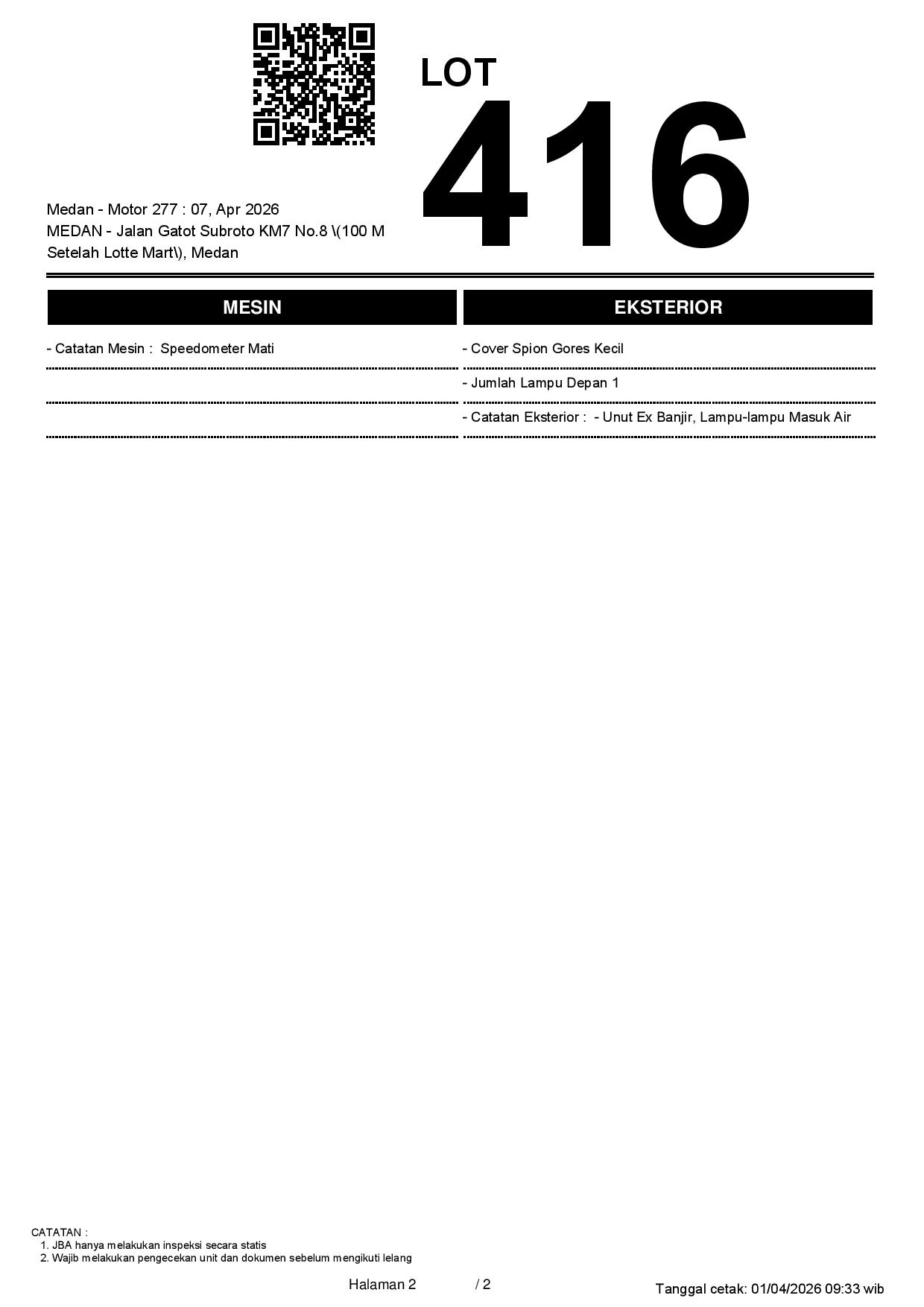 2. Peserta lelang wajib cek unit & dokumen