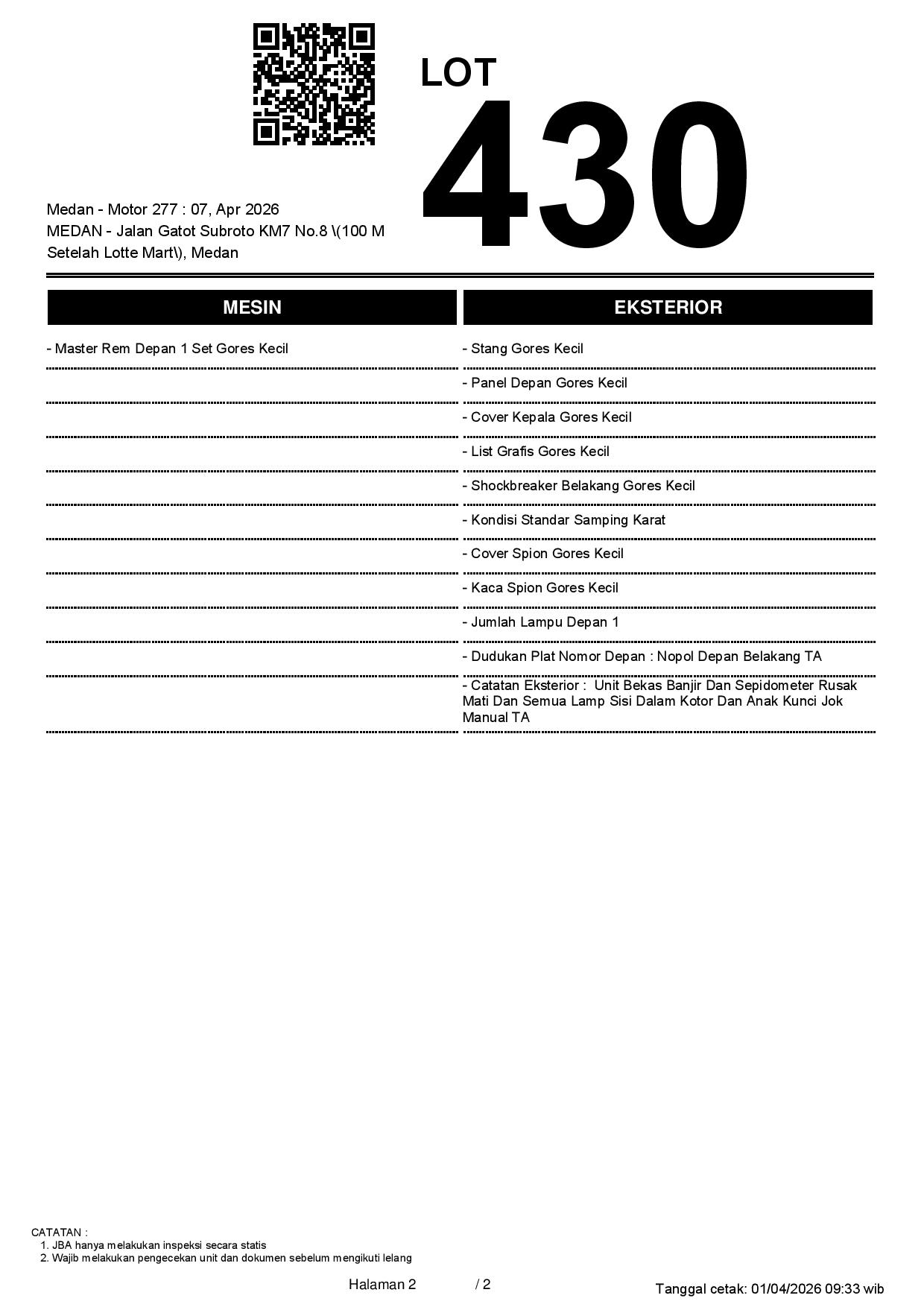 2. Peserta lelang wajib cek unit & dokumen