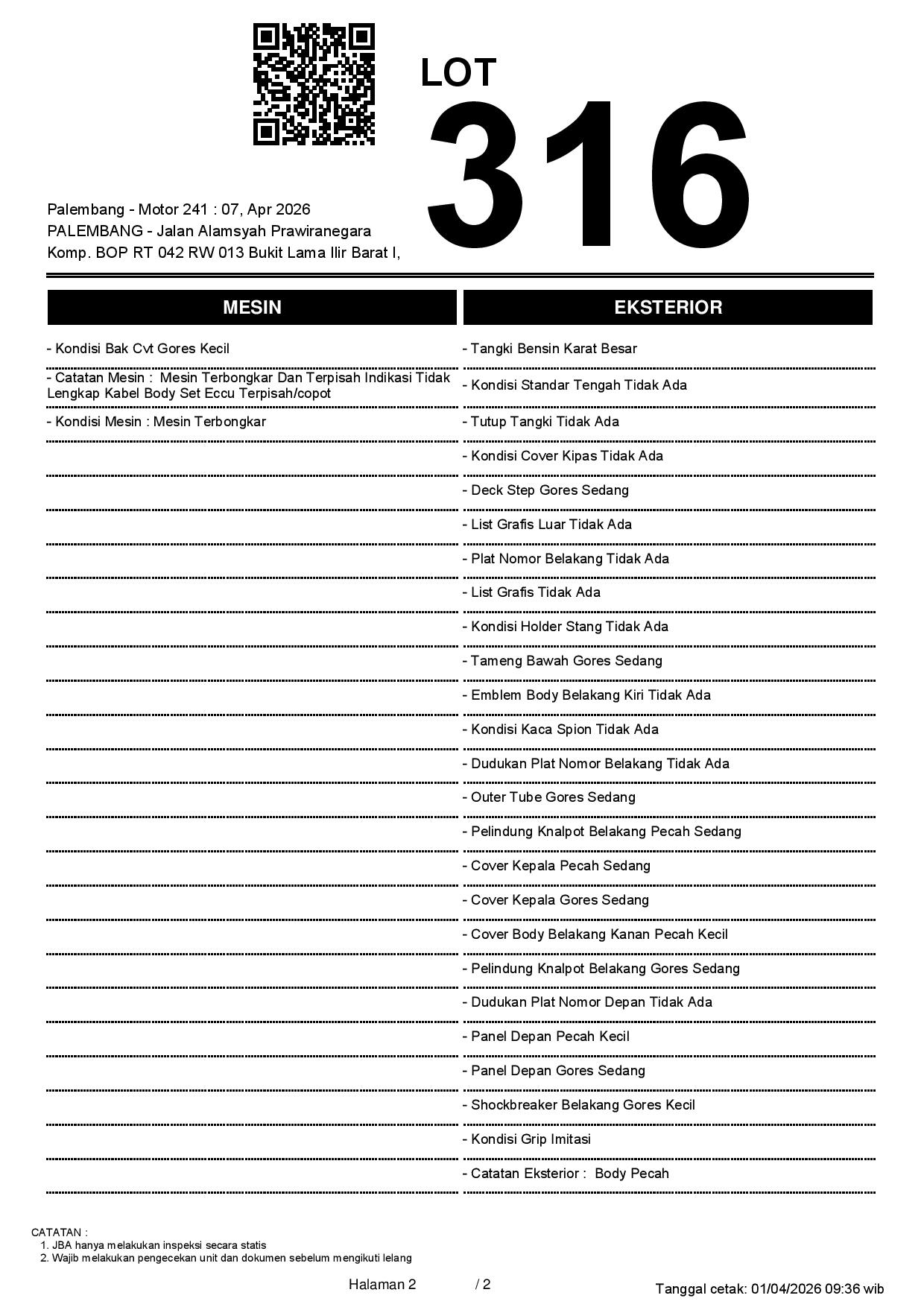2. Peserta lelang wajib cek unit & dokumen