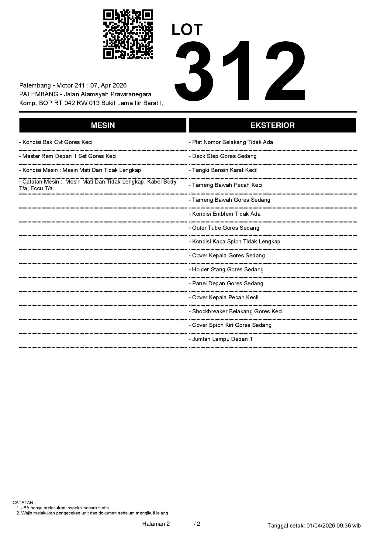 2. Peserta lelang wajib cek unit & dokumen