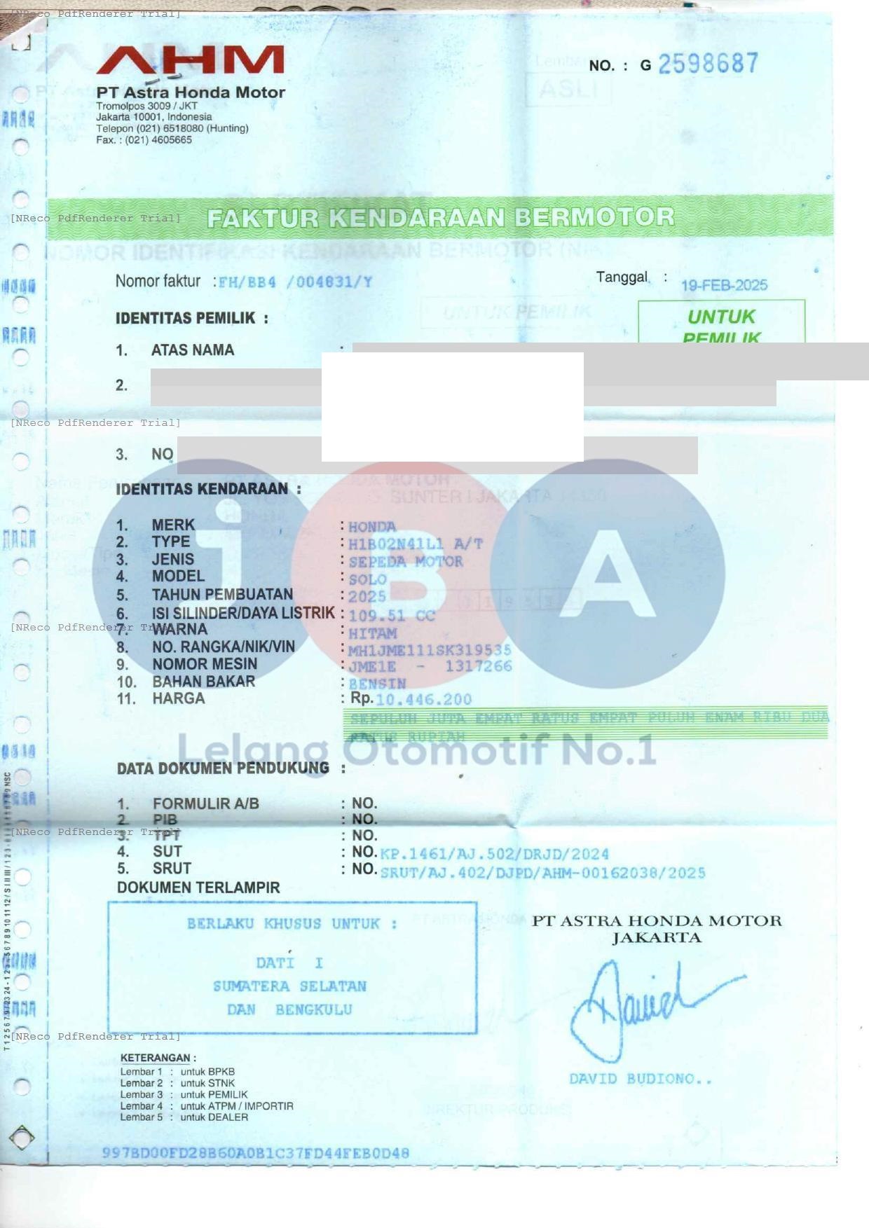 Nomor Rangka