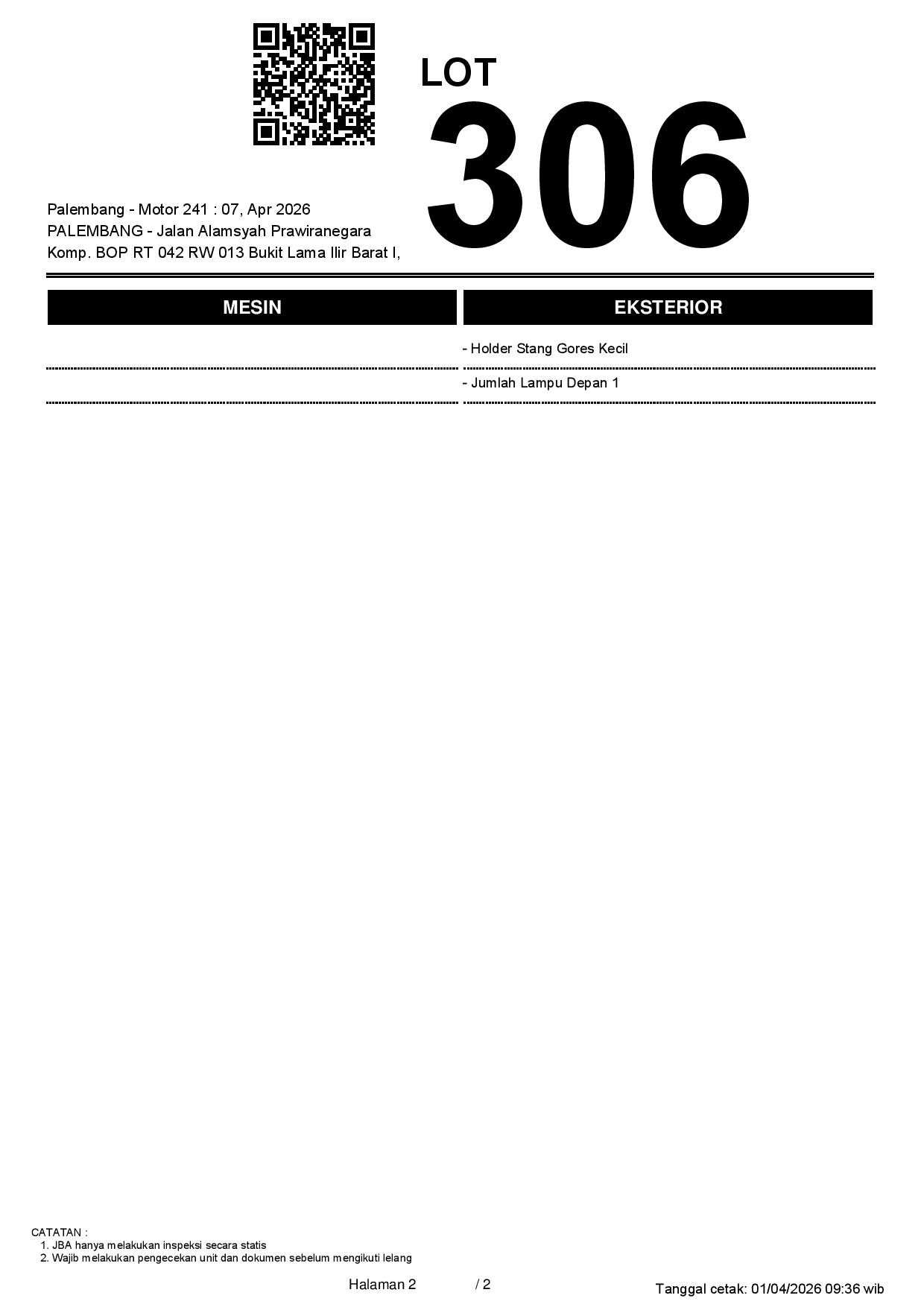 2. Peserta lelang wajib cek unit & dokumen