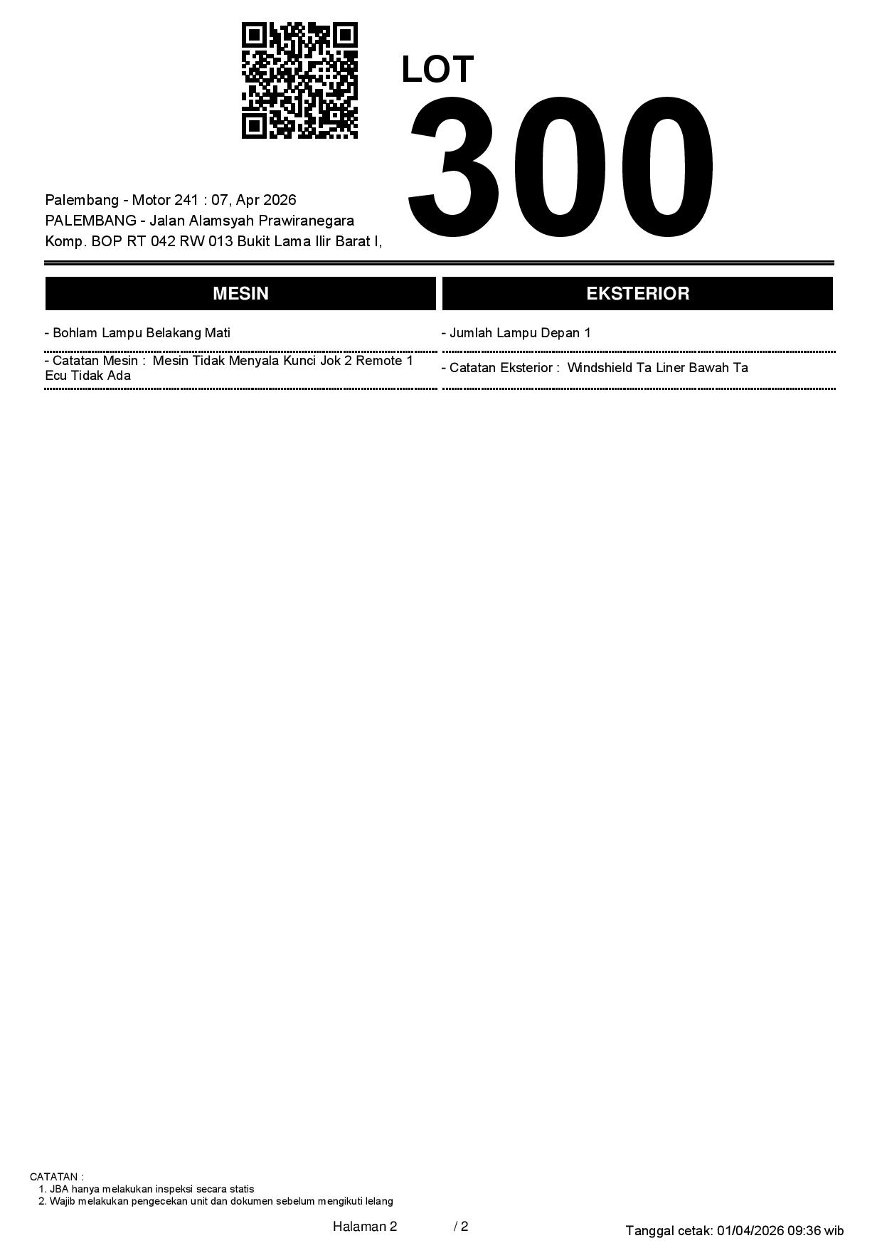 2. Peserta lelang wajib cek unit & dokumen
