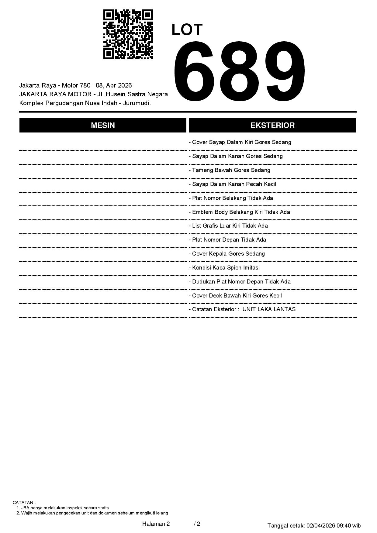2. Peserta lelang wajib cek unit & dokumen