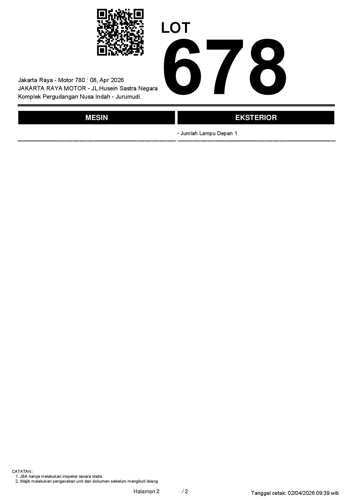 2. Peserta lelang wajib cek unit & dokumen