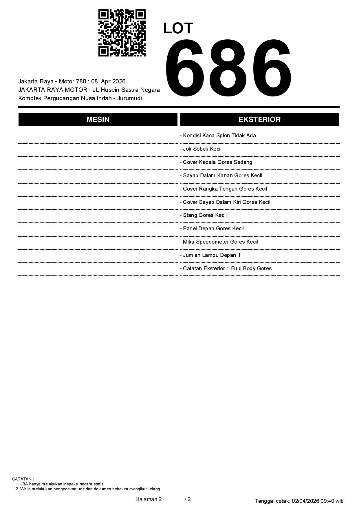 2. Peserta lelang wajib cek unit & dokumen