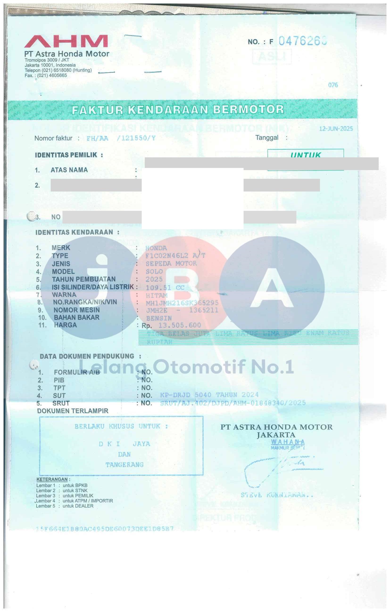 Nomor Rangka
