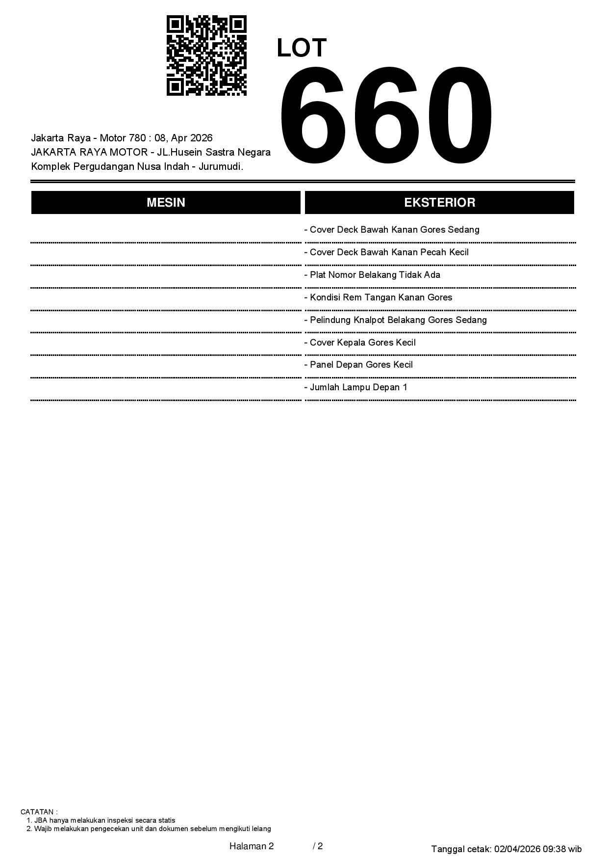 2. Peserta lelang wajib cek unit & dokumen
