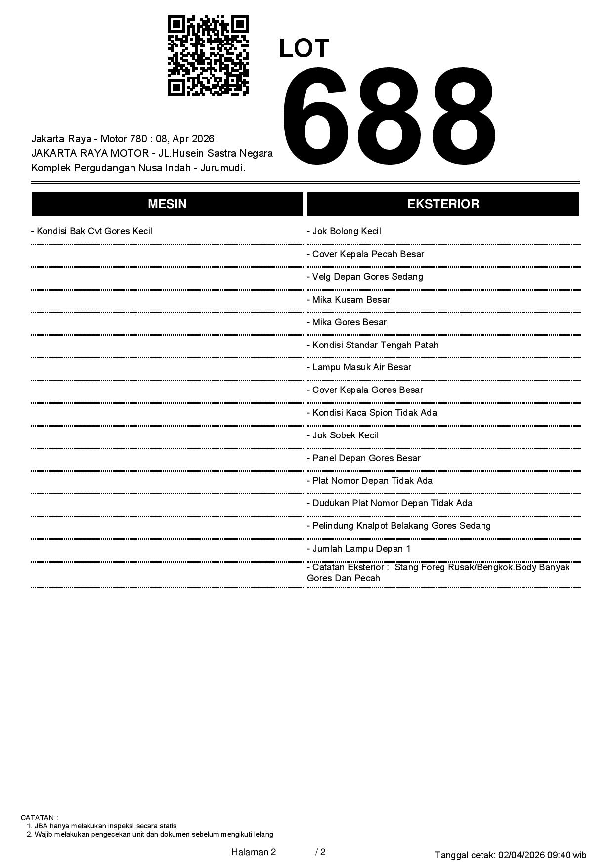 2. Peserta lelang wajib cek unit & dokumen
