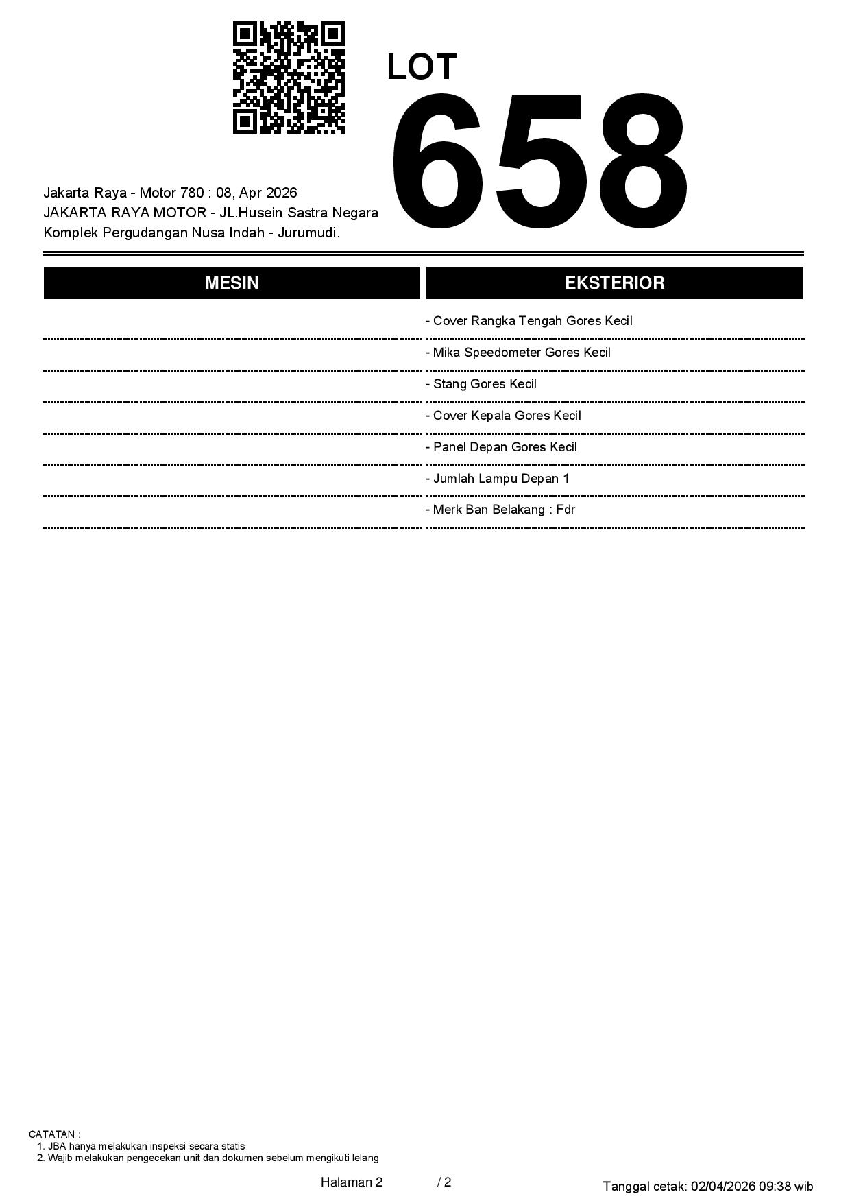 2. Peserta lelang wajib cek unit & dokumen