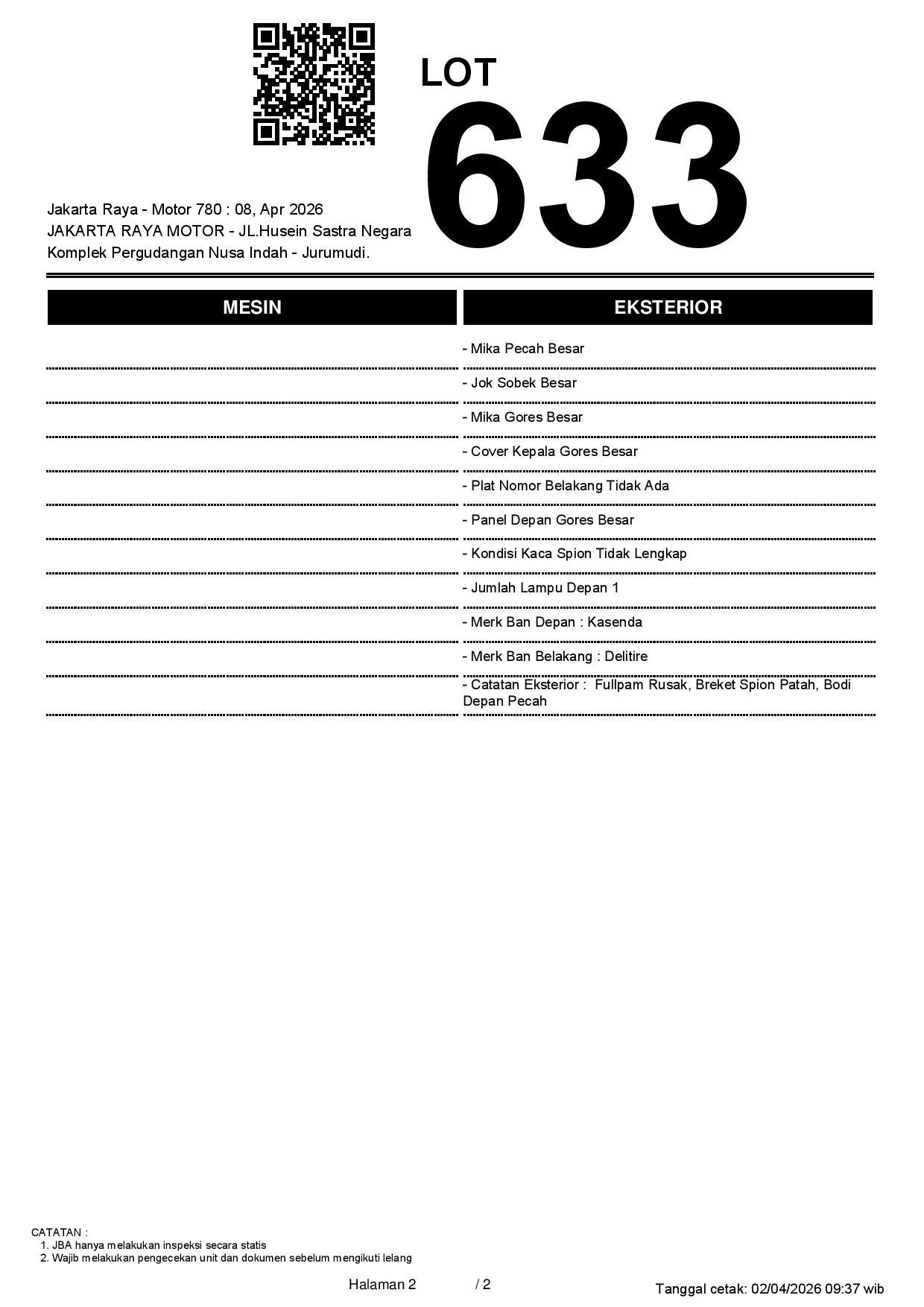 2. Peserta lelang wajib cek unit & dokumen