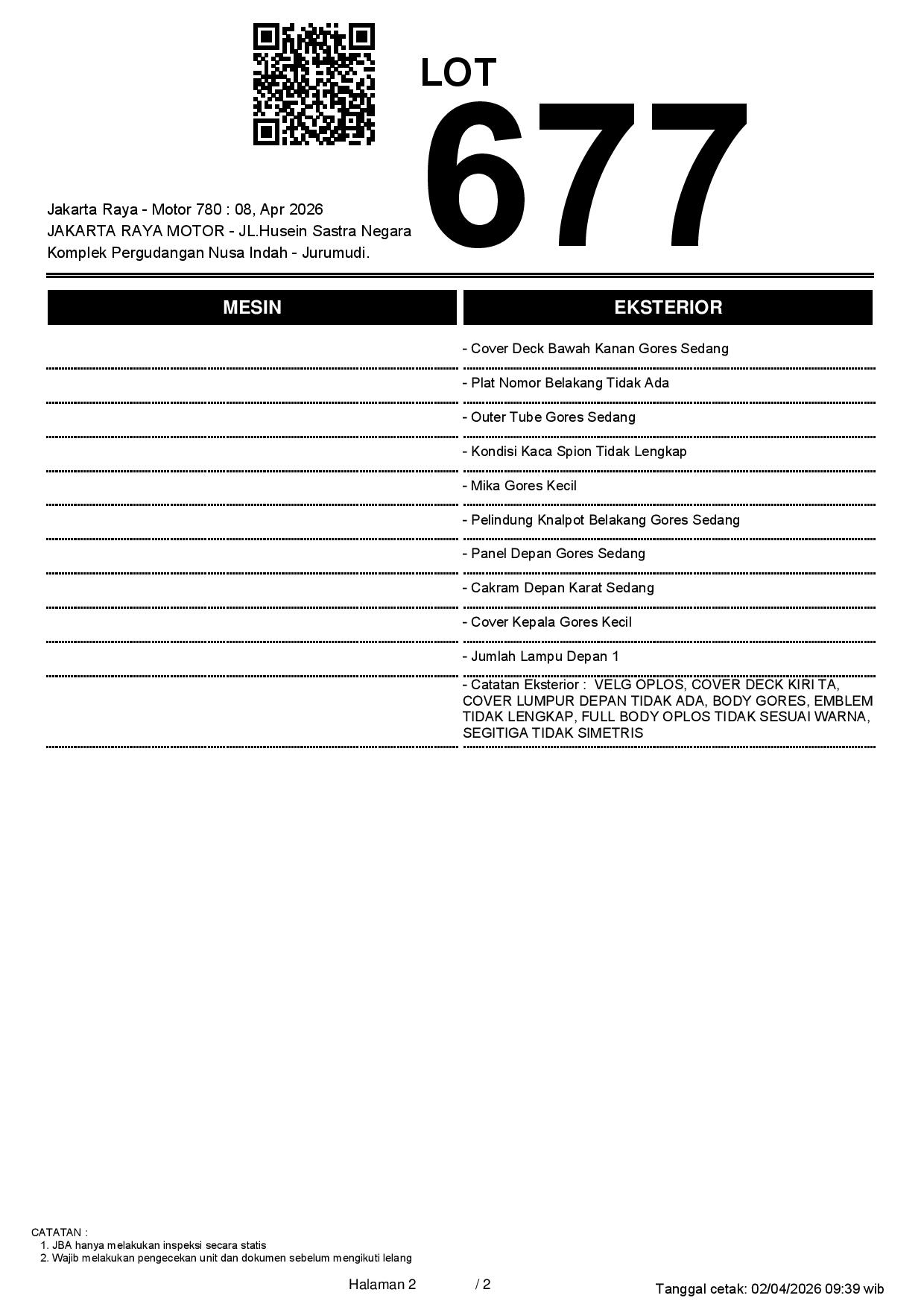 2. Peserta lelang wajib cek unit & dokumen