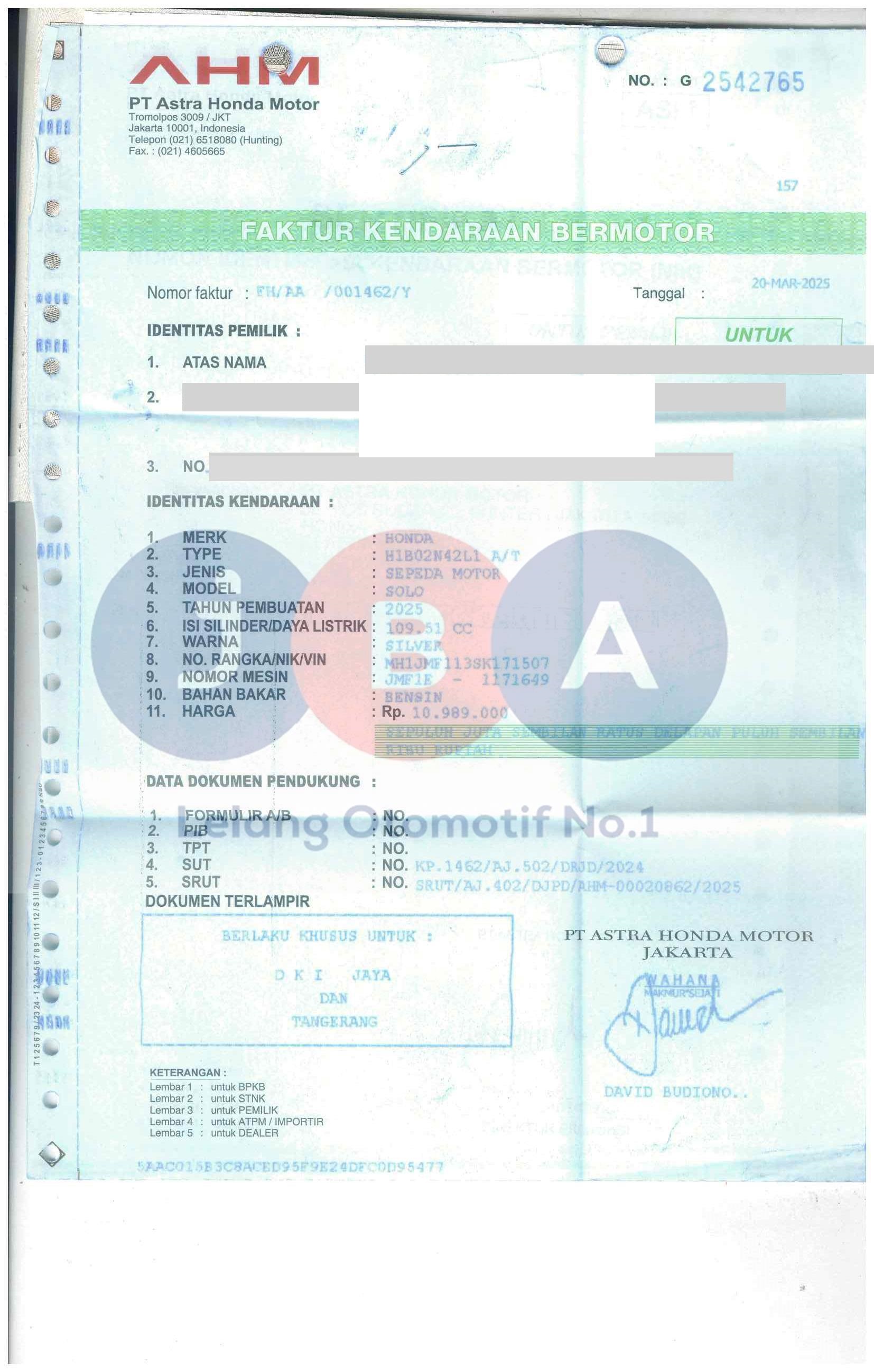Nomor Rangka