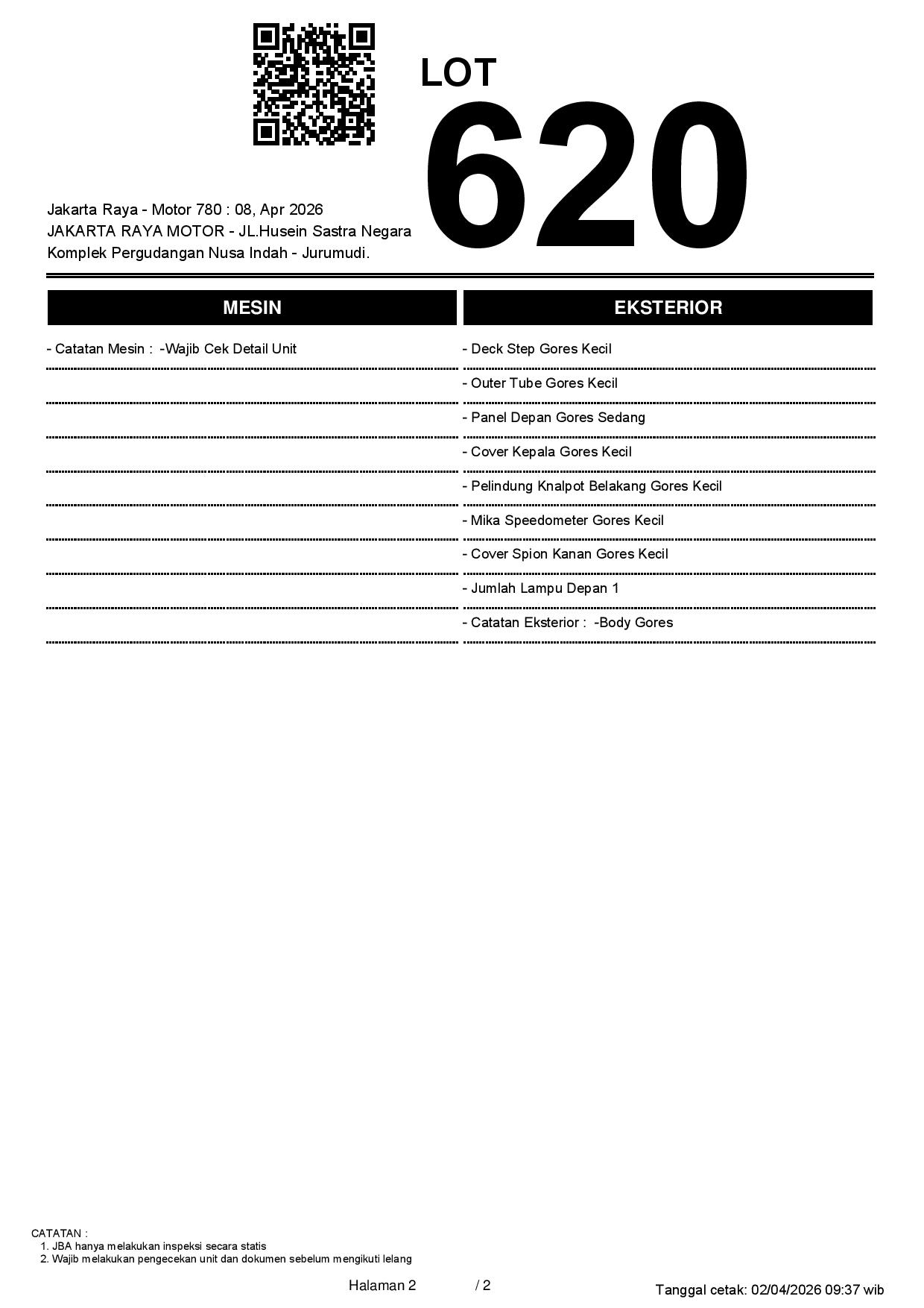 2. Peserta lelang wajib cek unit & dokumen