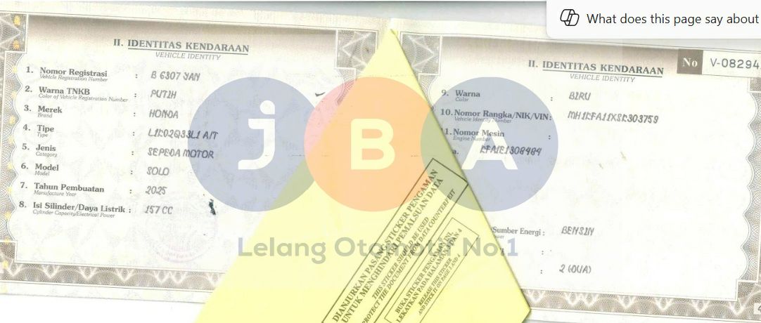 NOPOL PD STNK & BPKB BERBEDA // DI STNK B 6613 JSI & DI BPKB B 6307 YAN // BBN GANTUNG // PEMENANG LELANG WAJIB MENANDATANGANI SURAT PERNYATAAN BERMATERAI DI JBA // CEK SAMSAT ONLINE NOPOL BPKB BERBEDA UNIT //