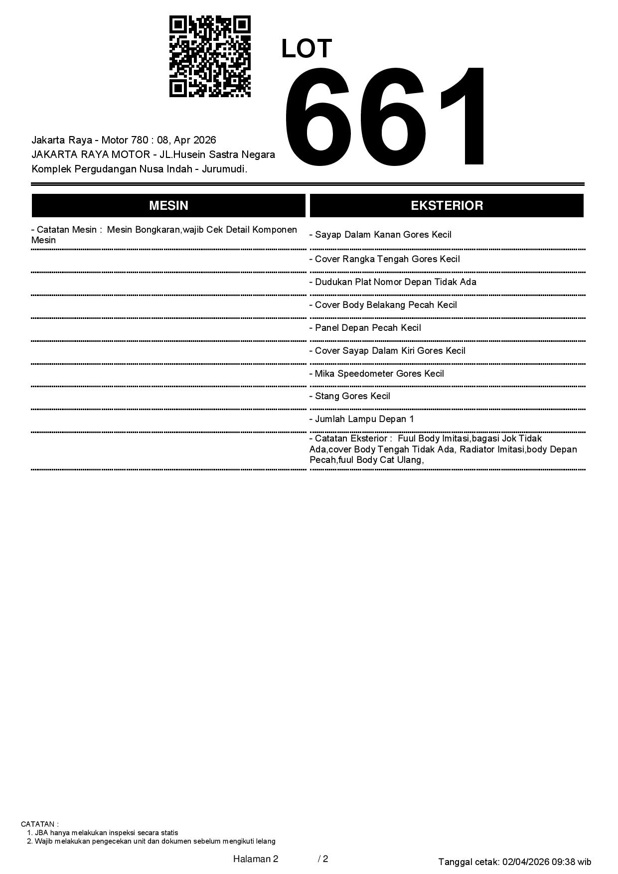 2. Peserta lelang wajib cek unit & dokumen