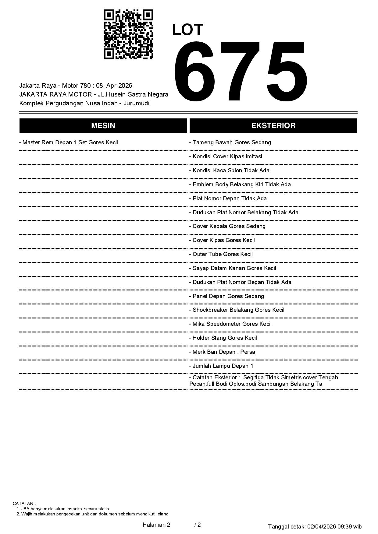 2. Peserta lelang wajib cek unit & dokumen