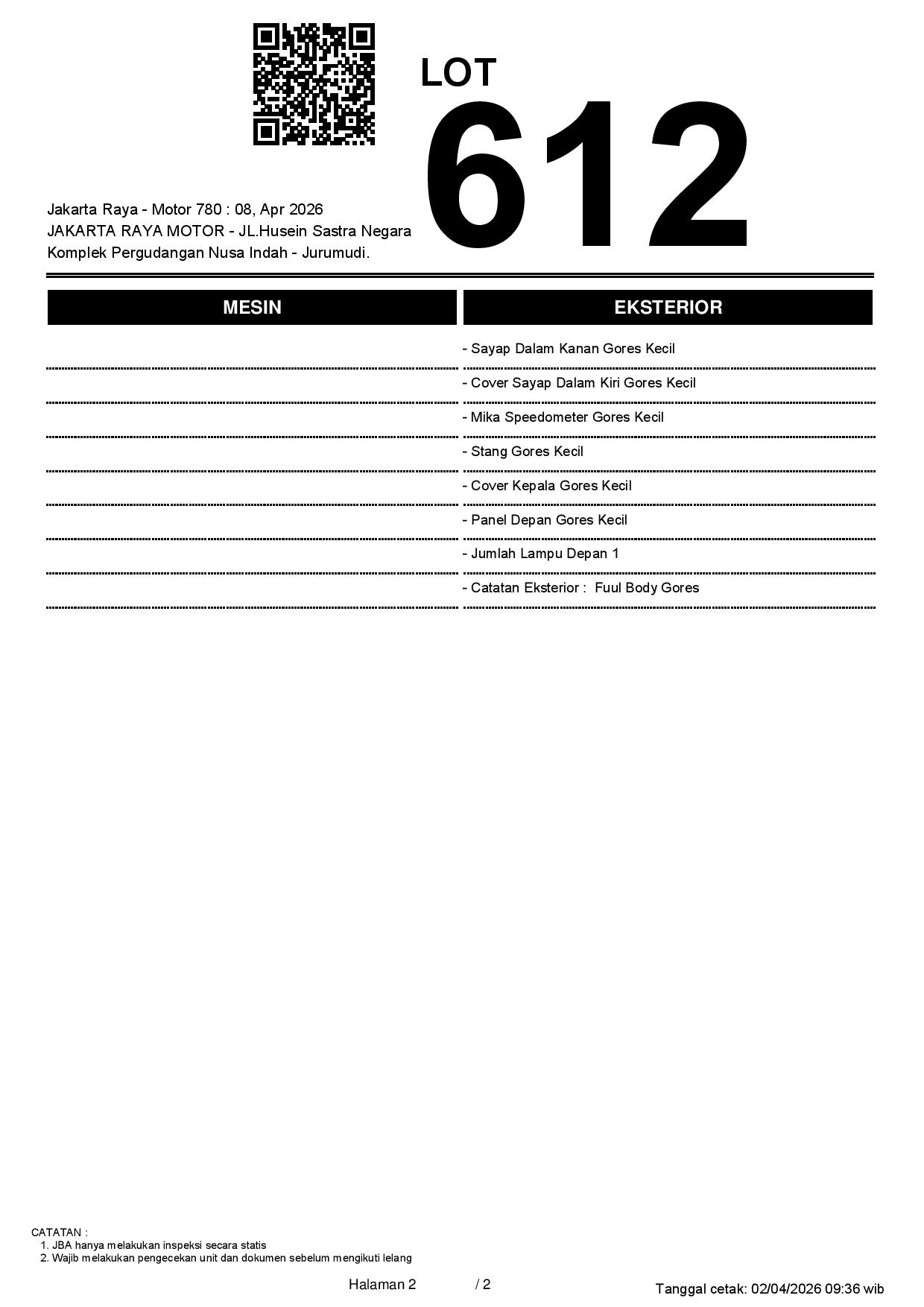 2. Peserta lelang wajib cek unit & dokumen