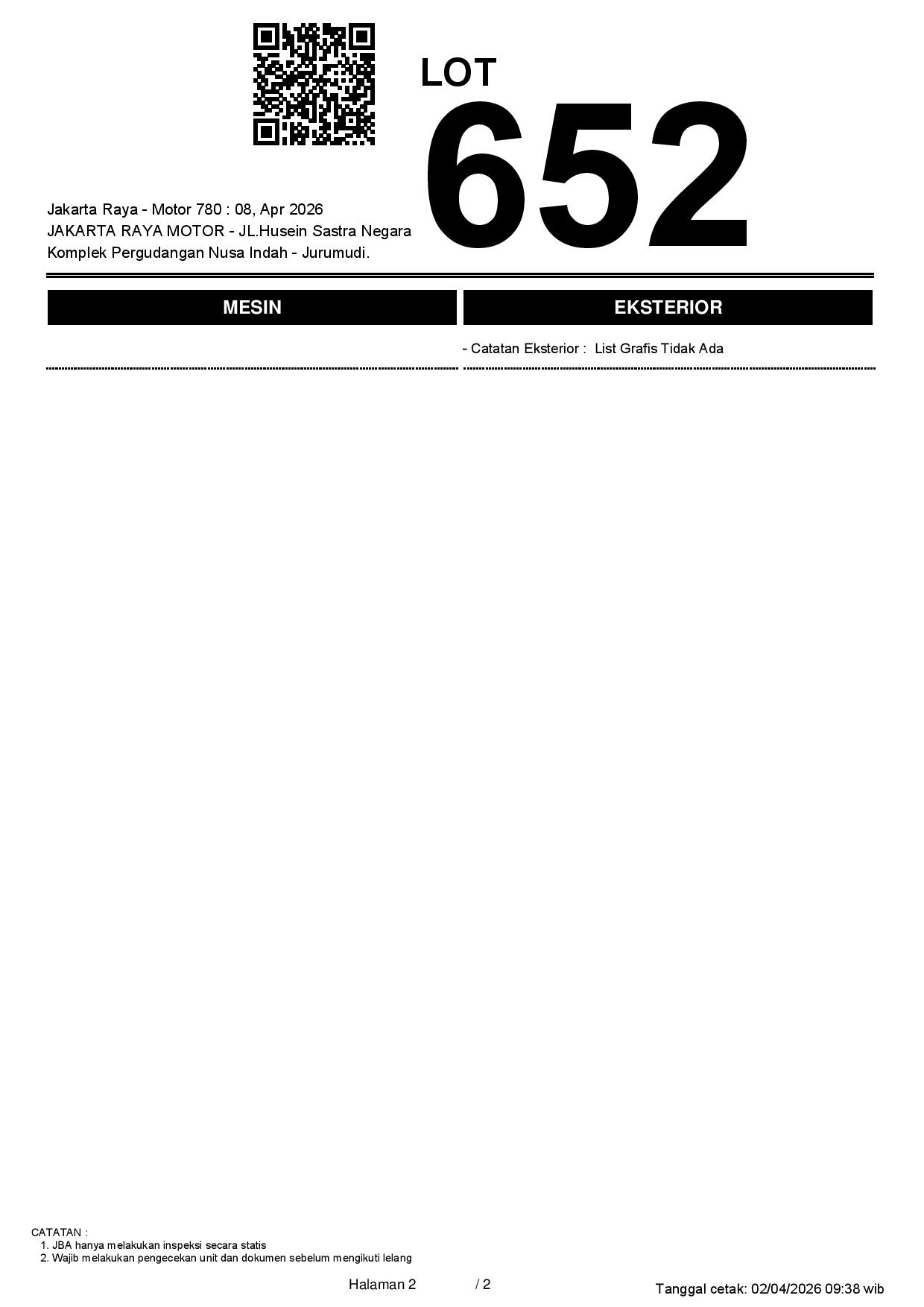 2. Peserta lelang wajib cek unit & dokumen