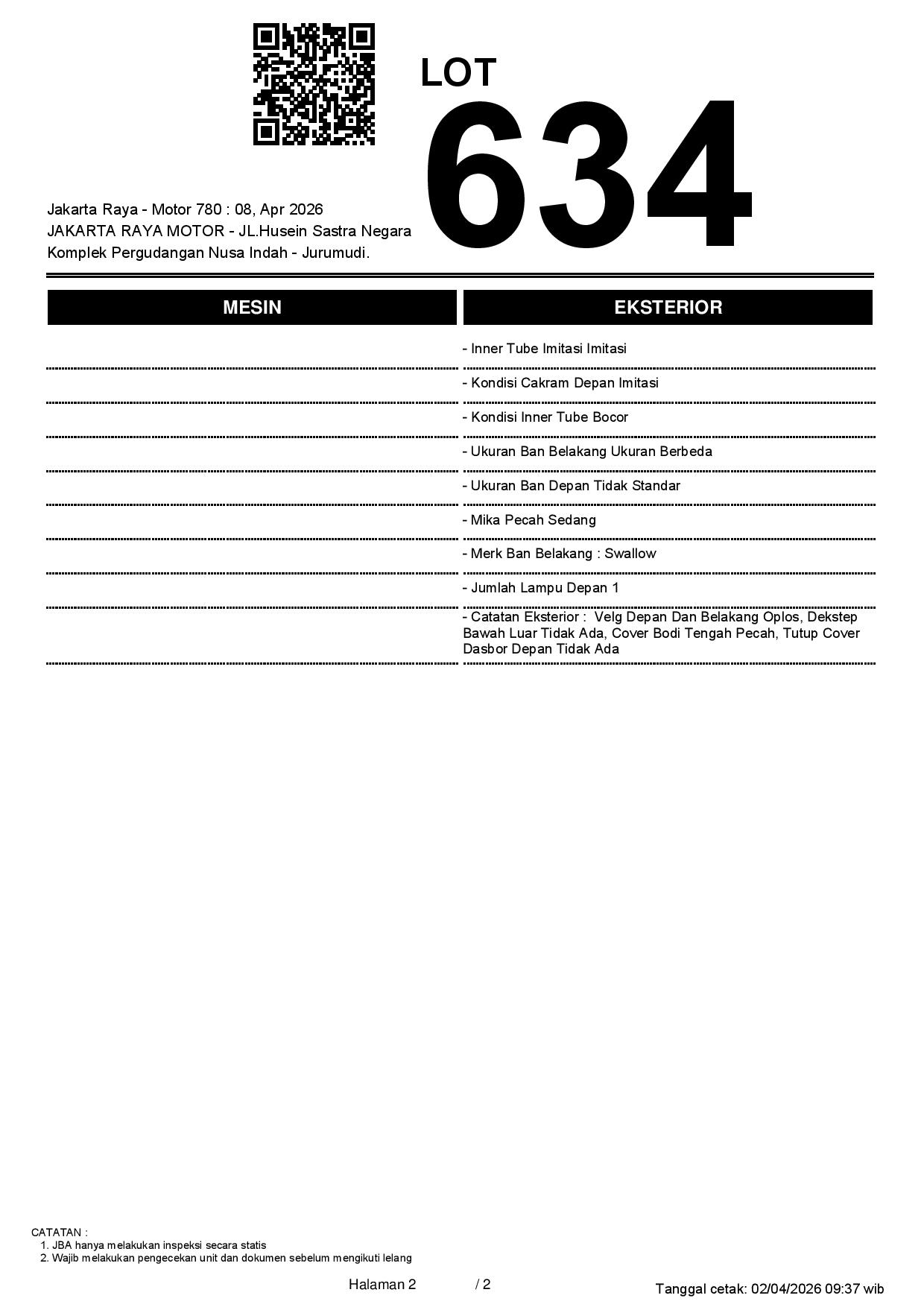 2. Peserta lelang wajib cek unit & dokumen