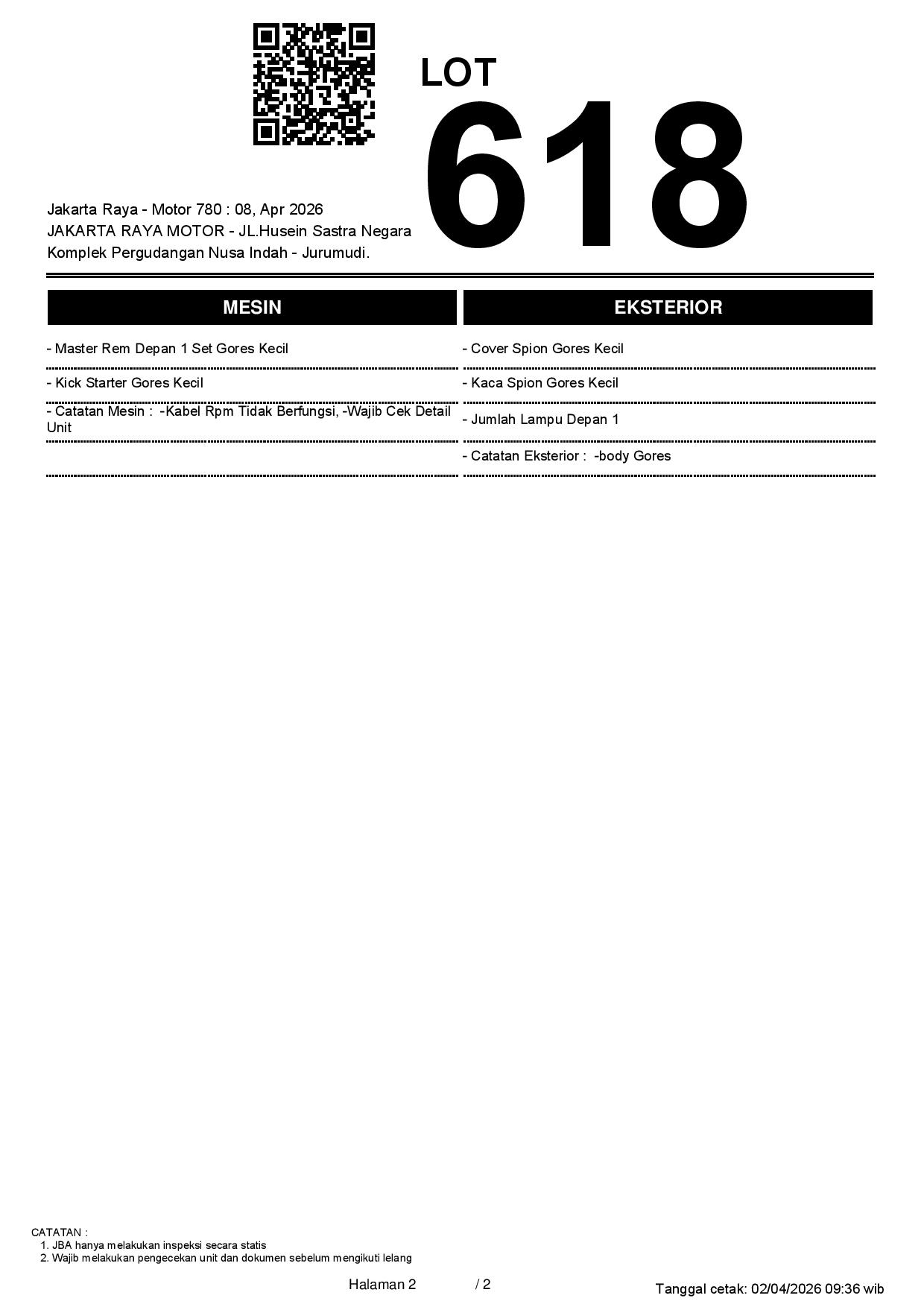 2. Peserta lelang wajib cek unit & dokumen