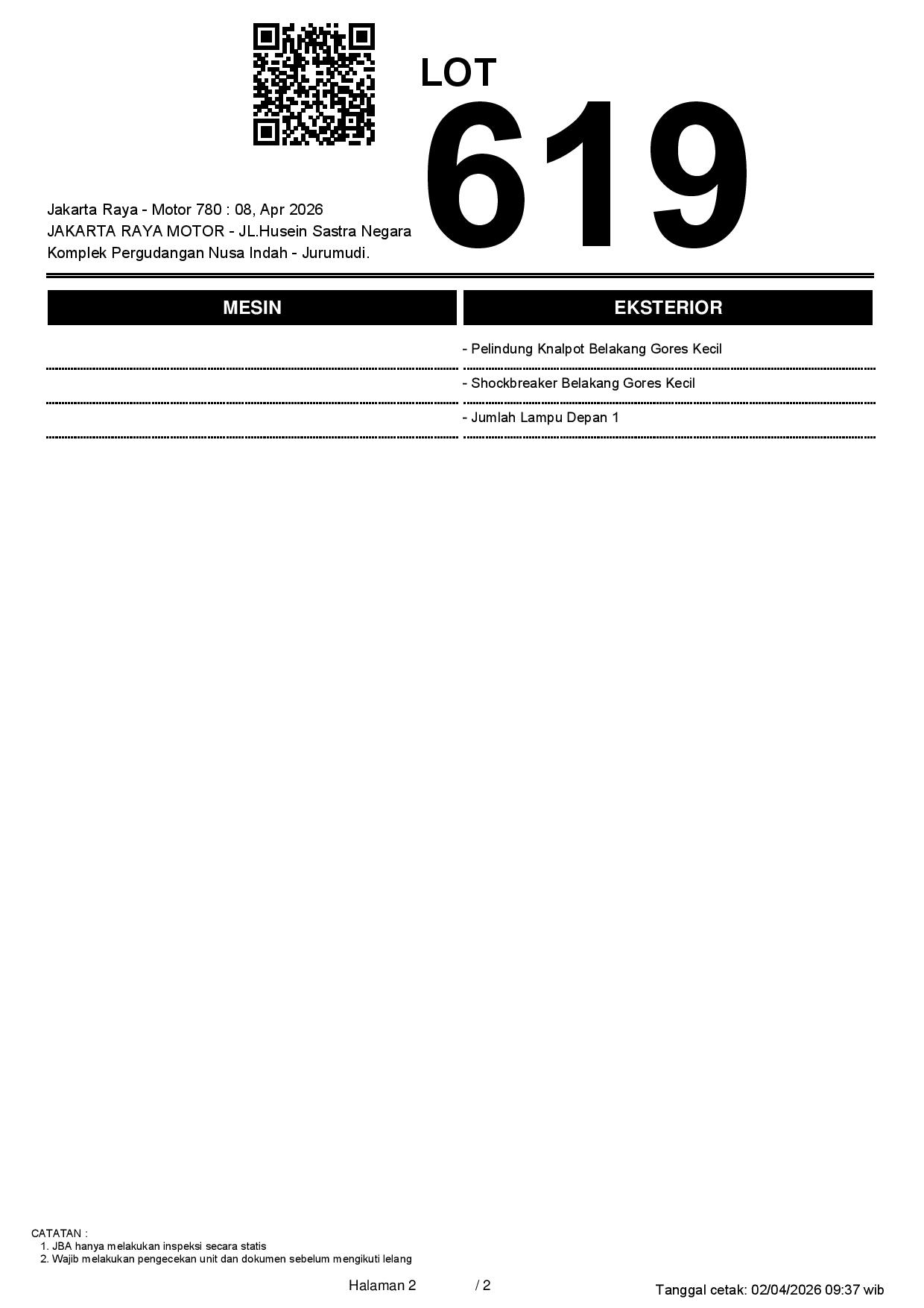 2. Peserta lelang wajib cek unit & dokumen