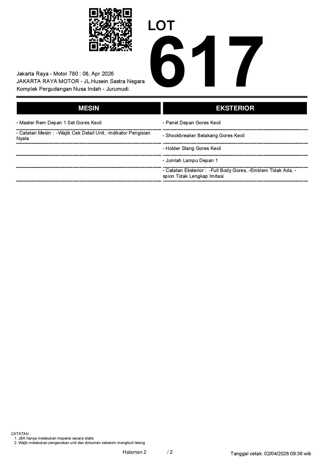 2. Peserta lelang wajib cek unit & dokumen