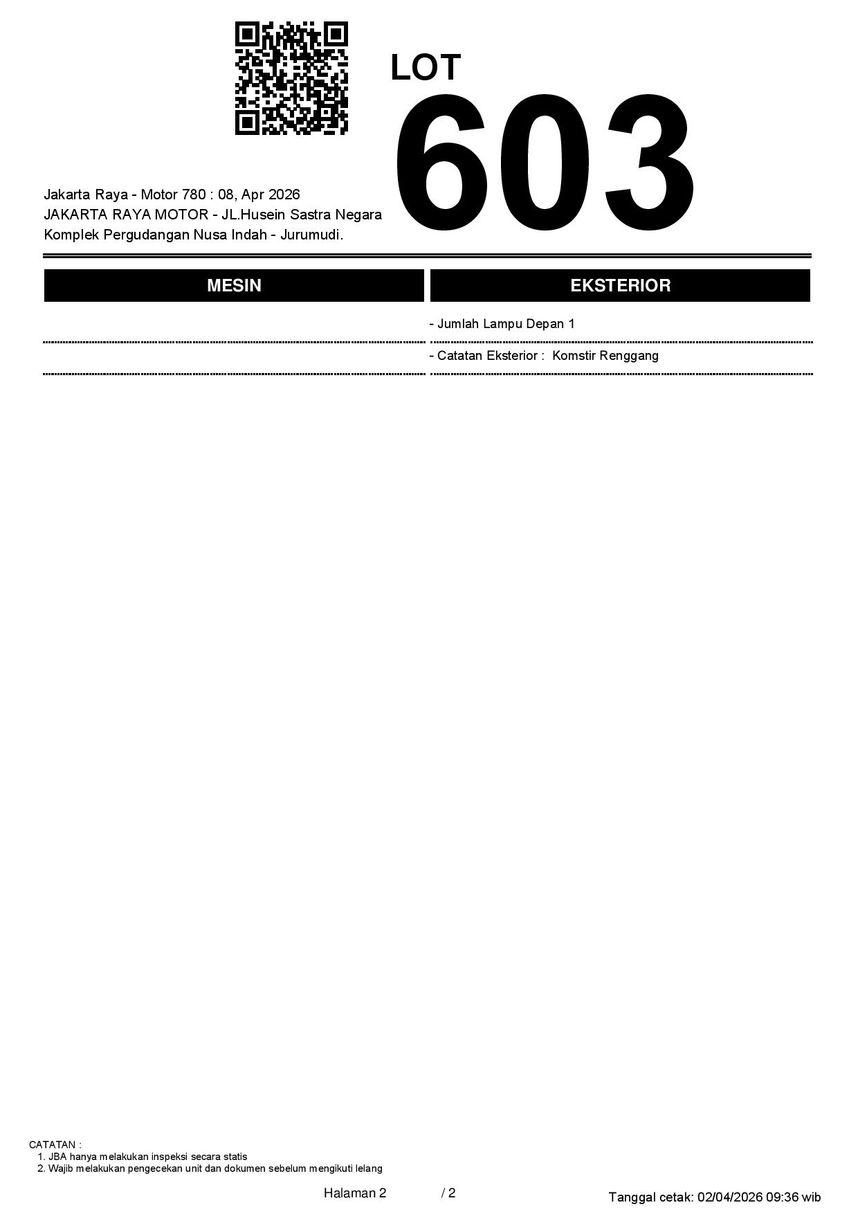 2. Peserta lelang wajib cek unit & dokumen