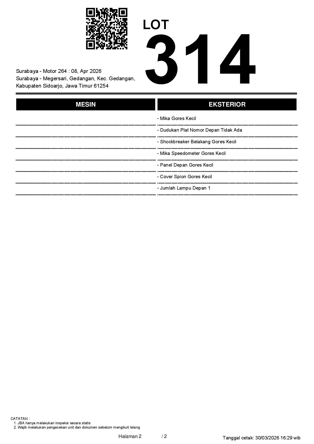 1. Peserta lelang wajib cek unit & dokumen