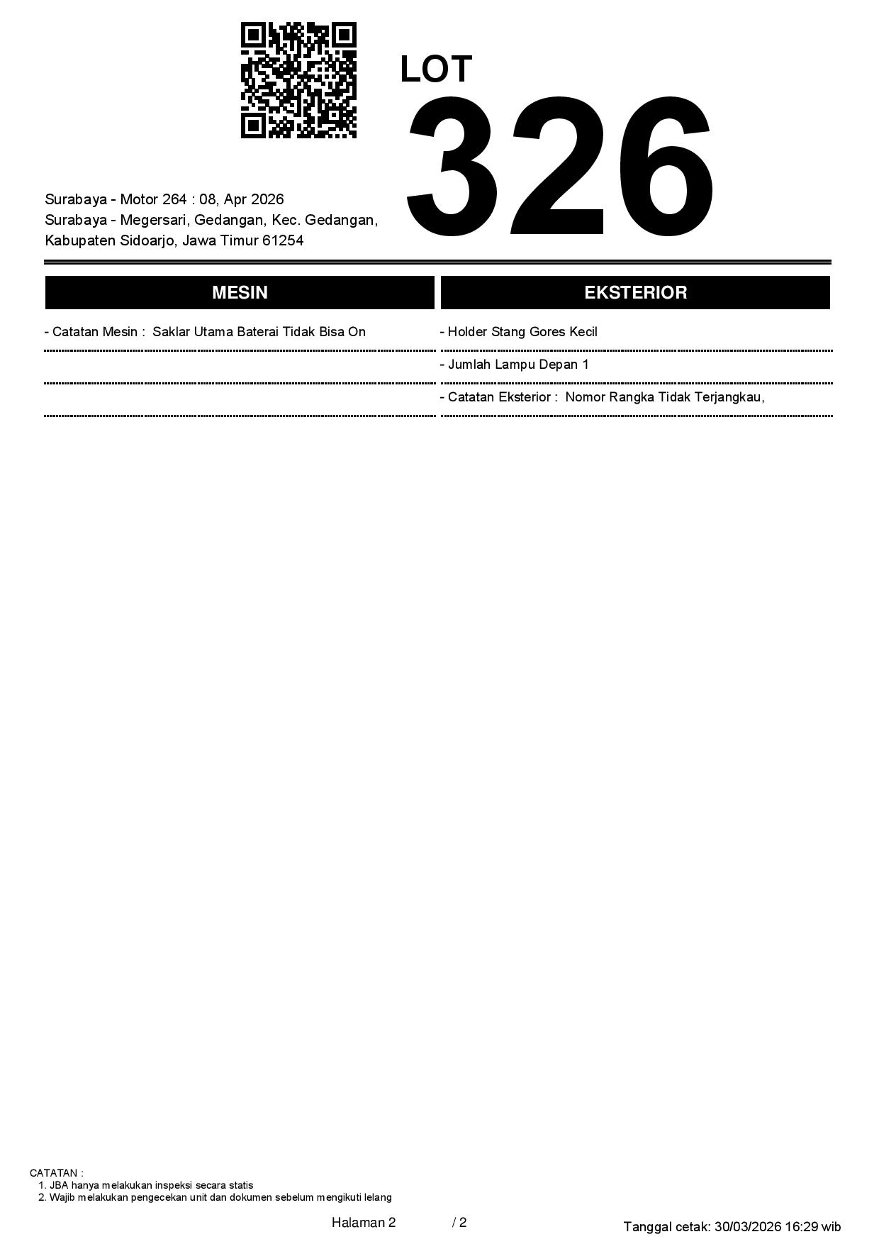 1. Peserta lelang wajib cek unit & dokumen