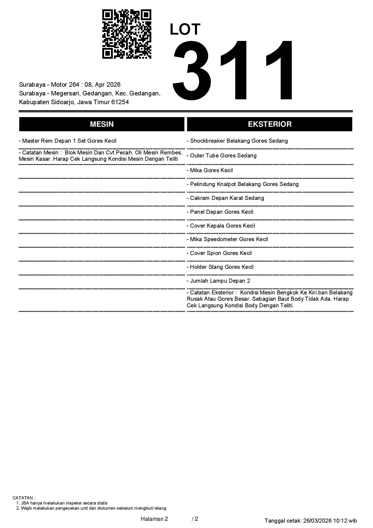2. Peserta lelang wajib cek unit & dokumen