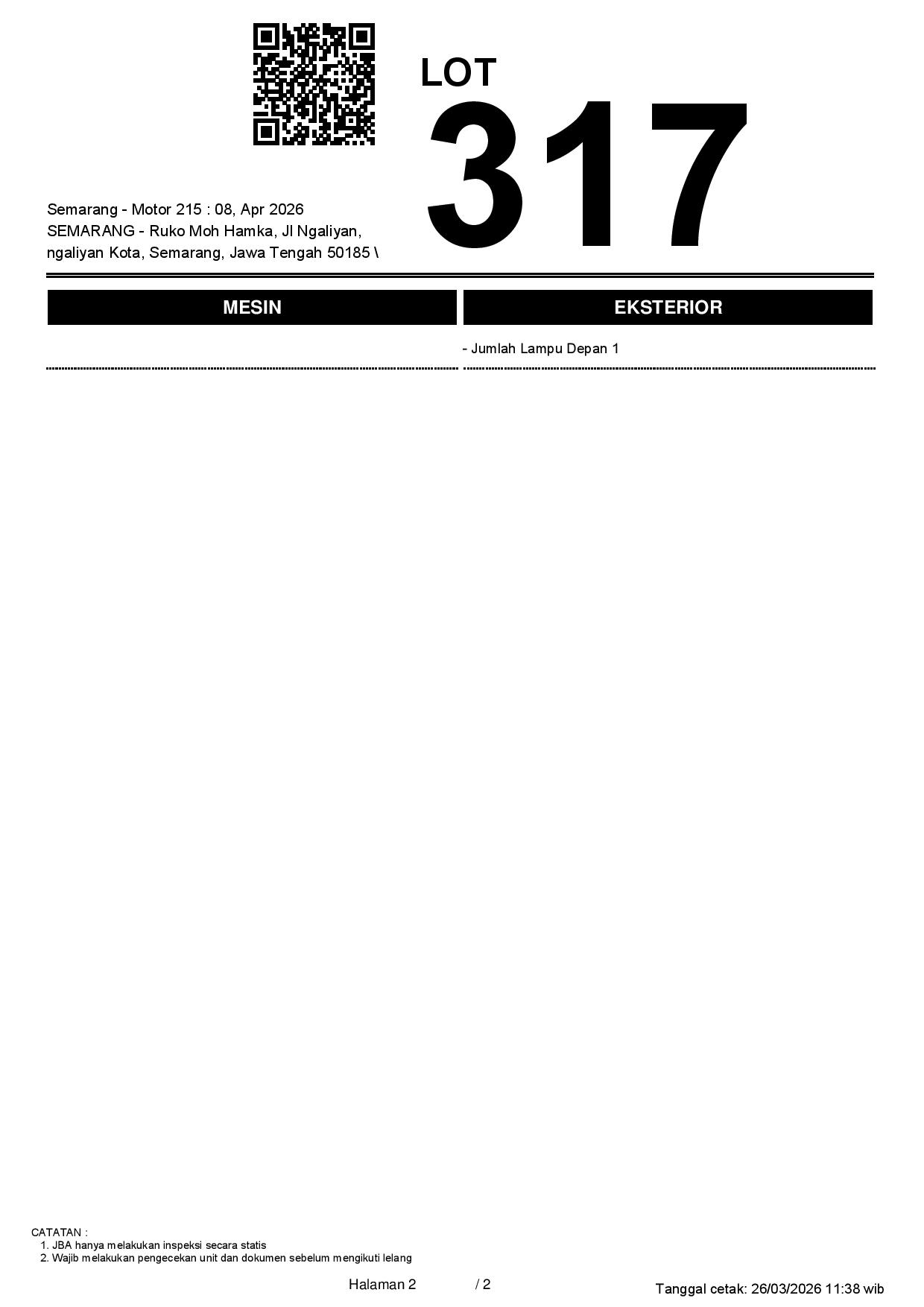 2. Peserta lelang wajib cek unit & dokumen