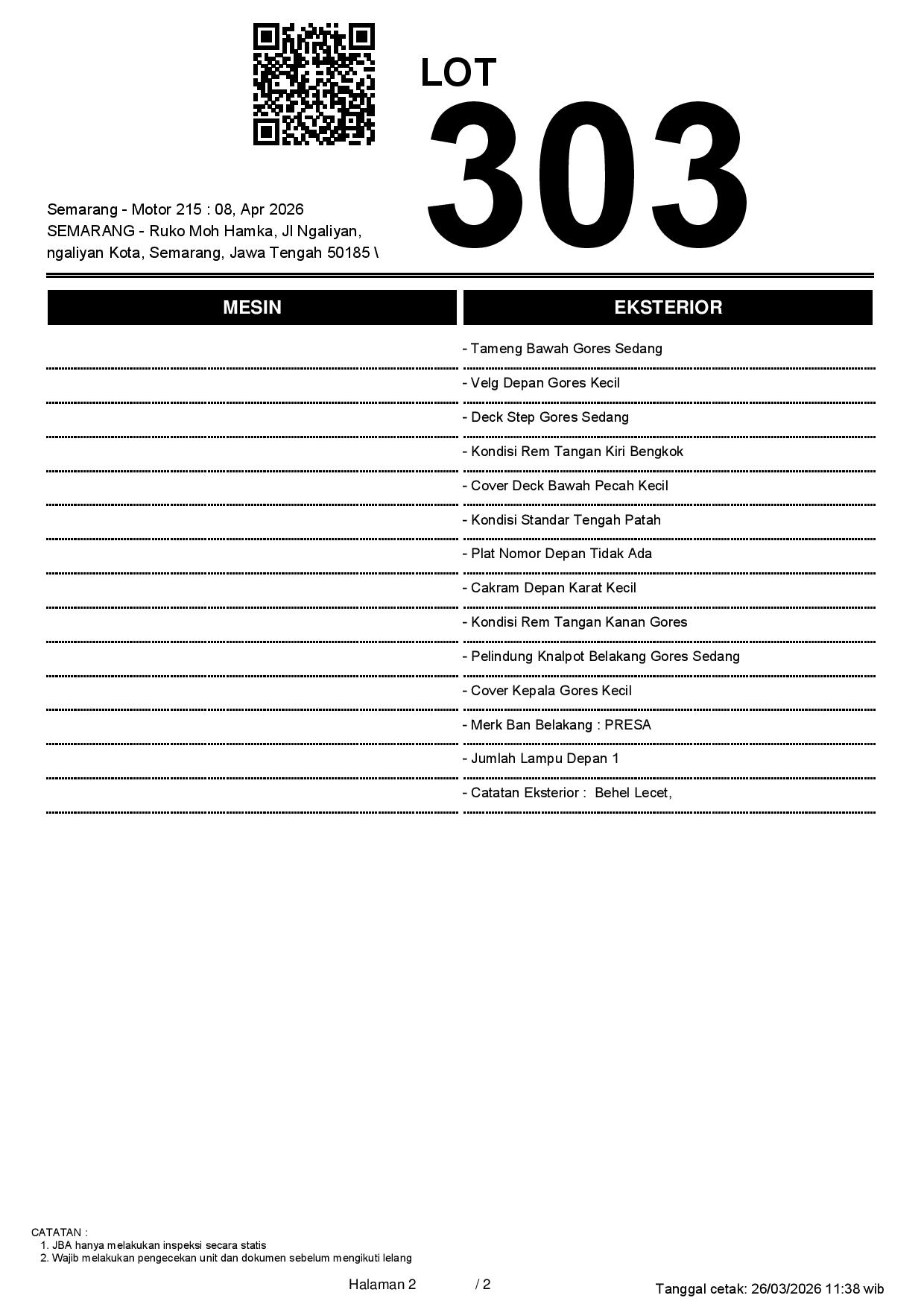2. Peserta lelang wajib cek unit & dokumen