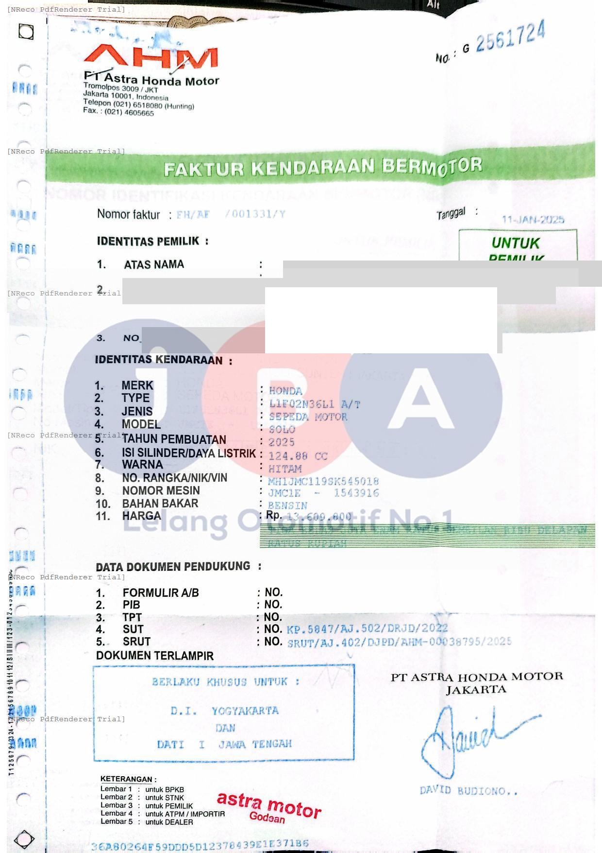 Nomor Rangka