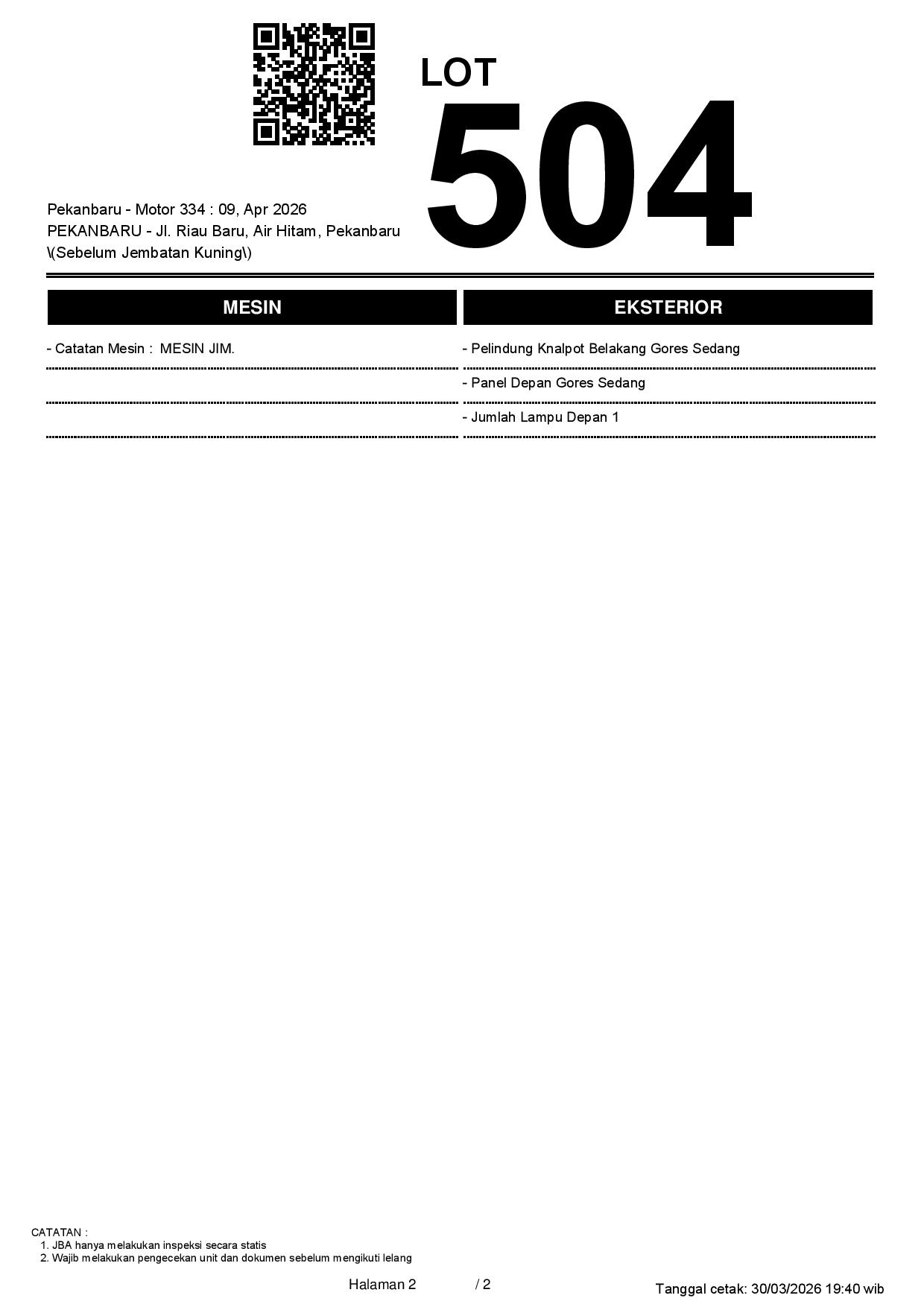 1. Peserta lelang wajib cek unit & dokumen