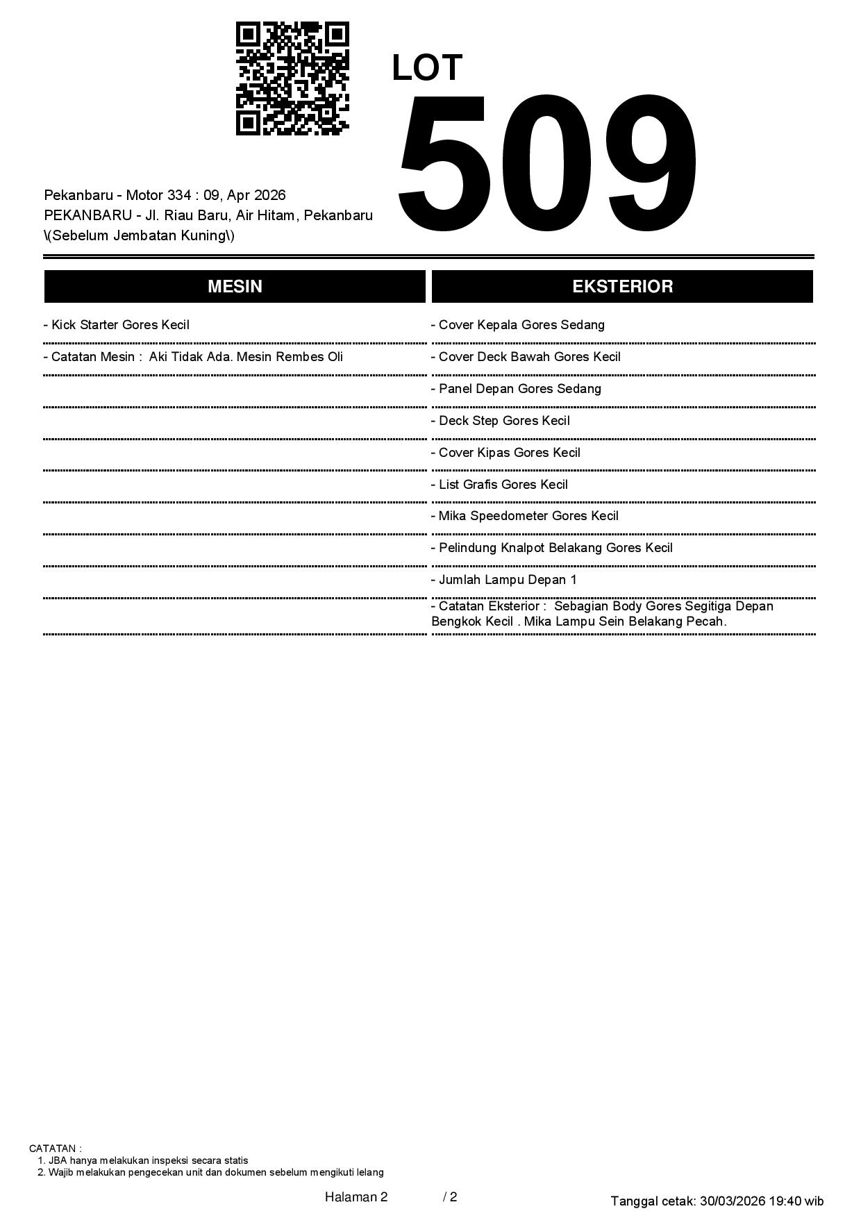 1. Peserta lelang wajib cek unit & dokumen
