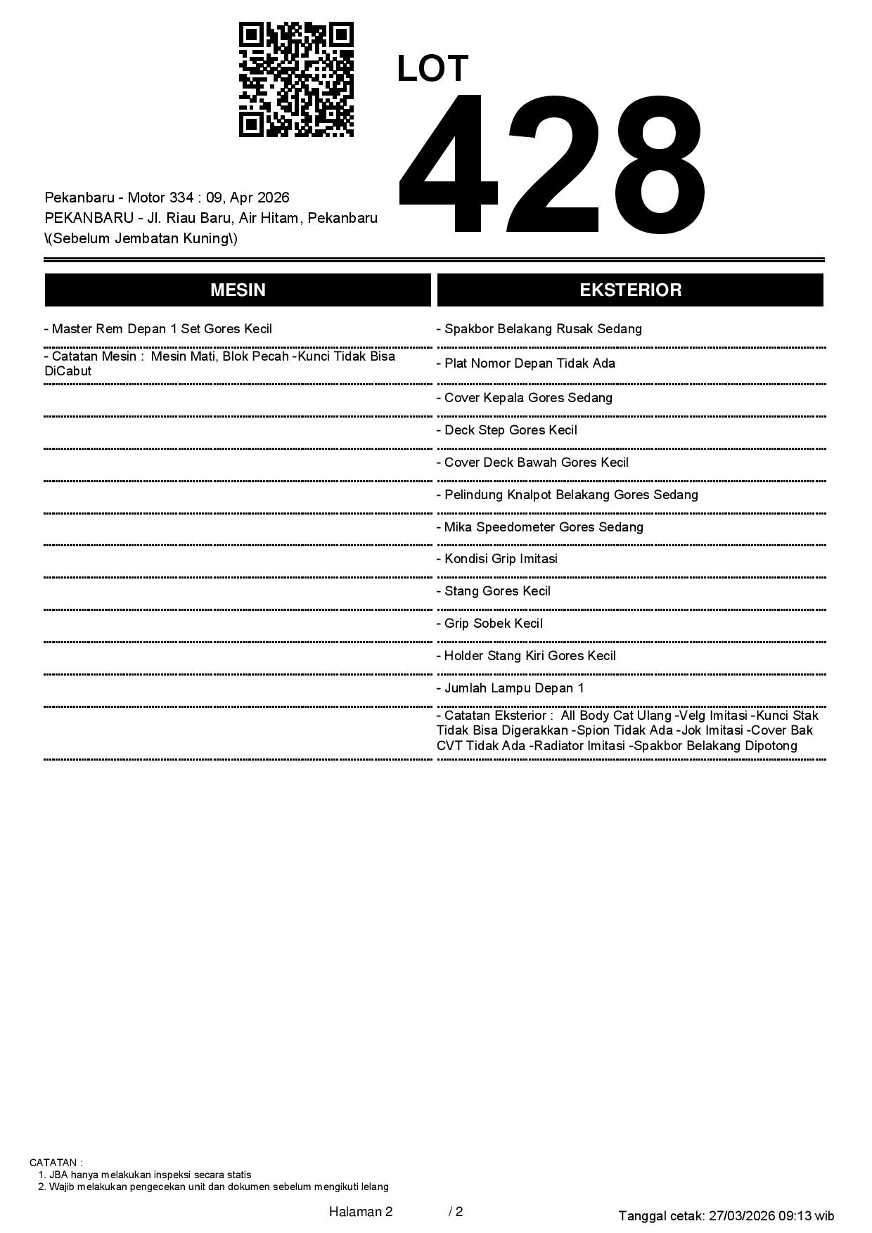 2. Peserta lelang wajib cek unit & dokumen