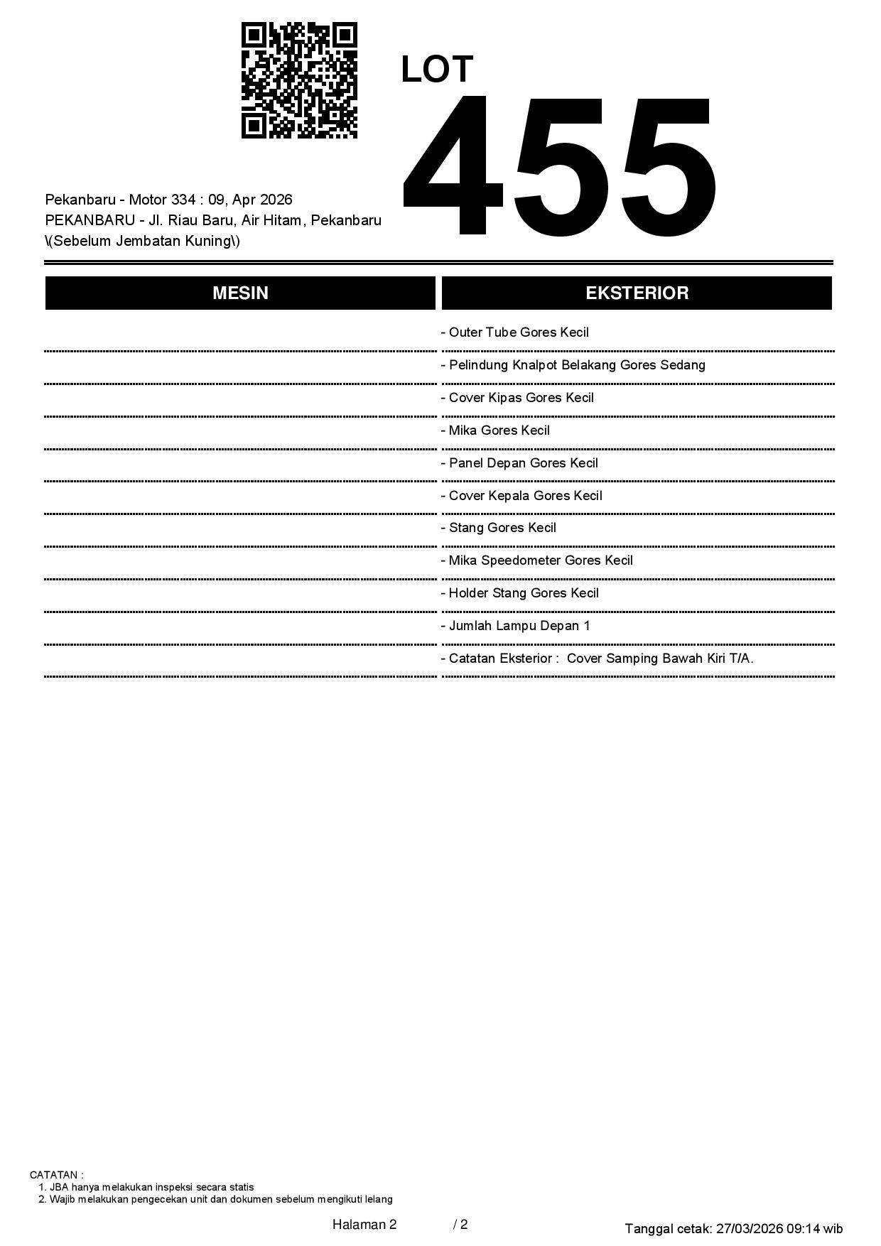 2. Peserta lelang wajib cek unit & dokumen