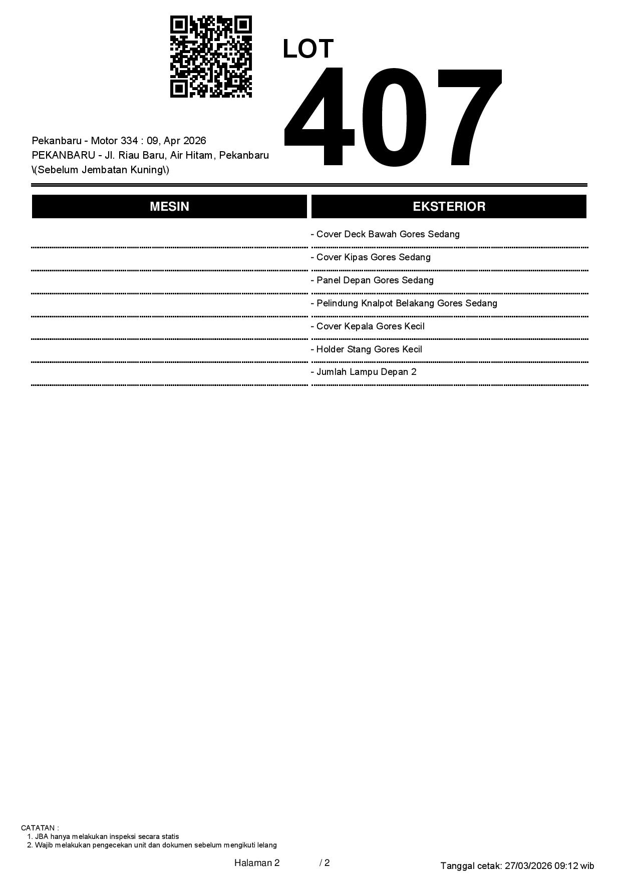 2. Peserta lelang wajib cek unit & dokumen