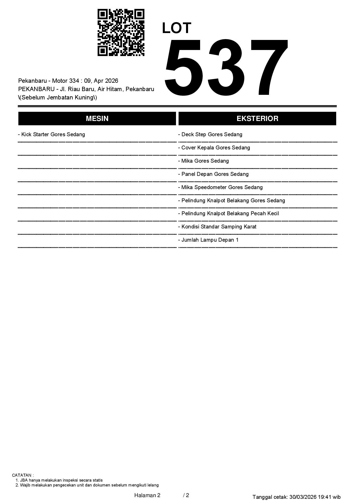 1. Peserta lelang wajib cek unit & dokumen
