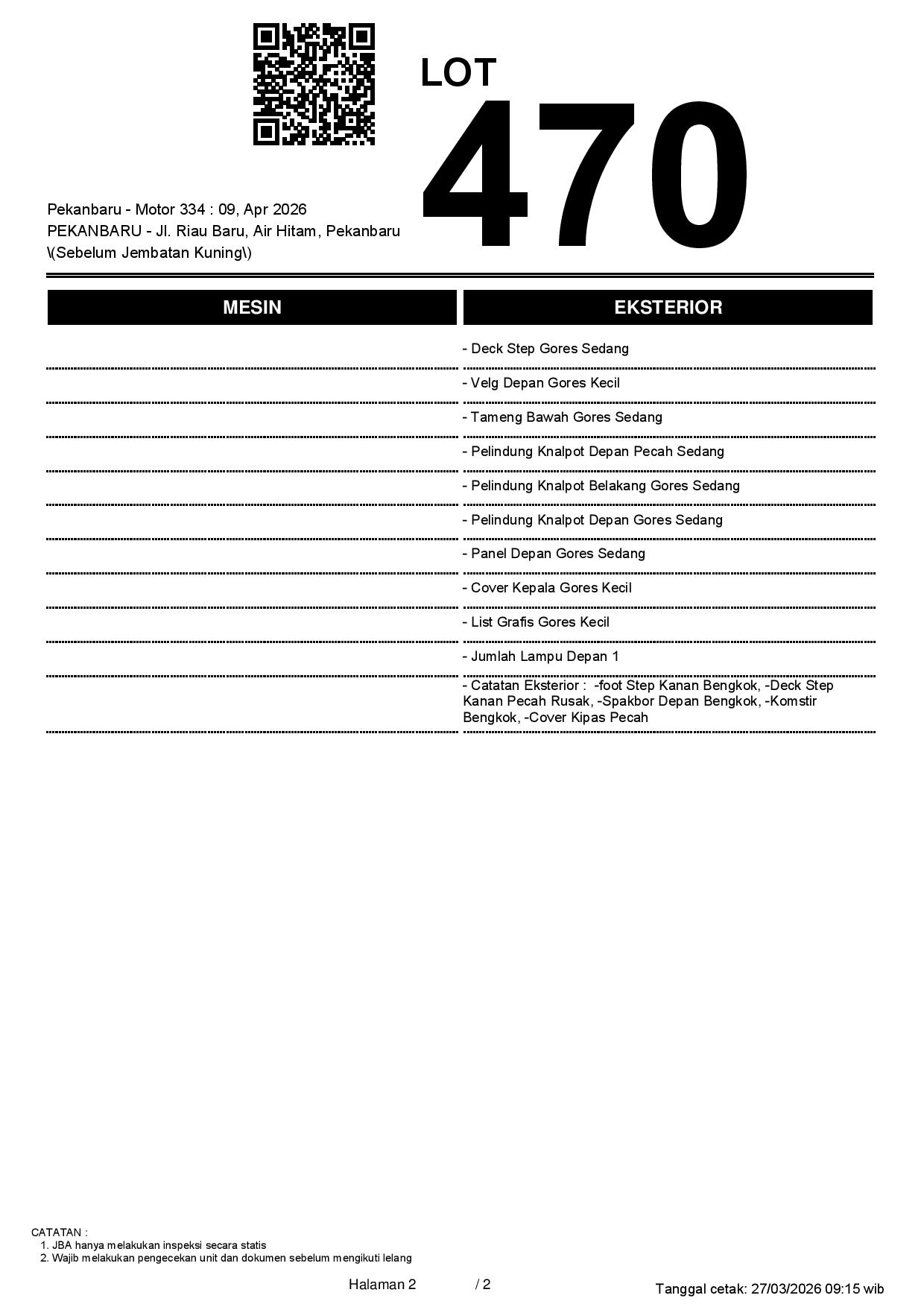2. Peserta lelang wajib cek unit & dokumen