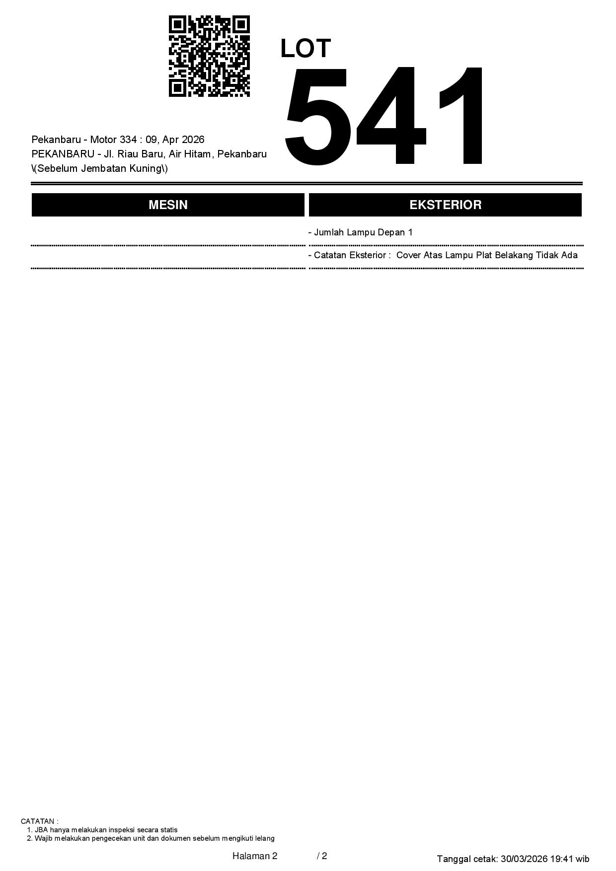 1. Peserta lelang wajib cek unit & dokumen