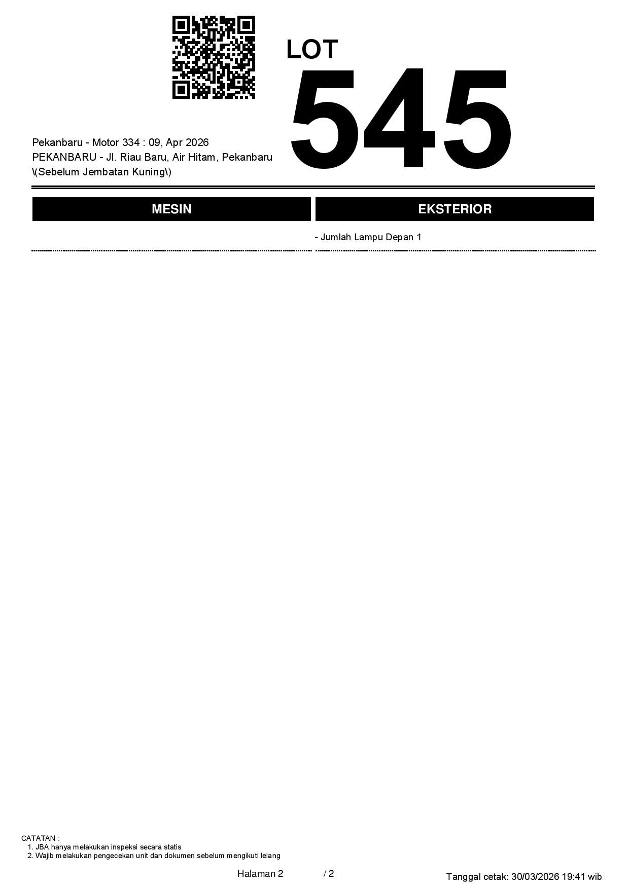 1. Peserta lelang wajib cek unit & dokumen