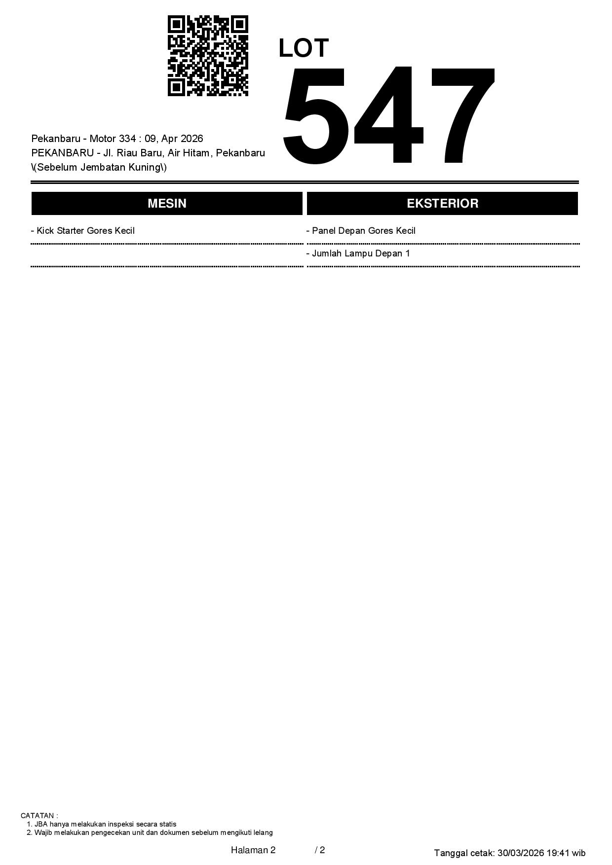 1. Peserta lelang wajib cek unit & dokumen