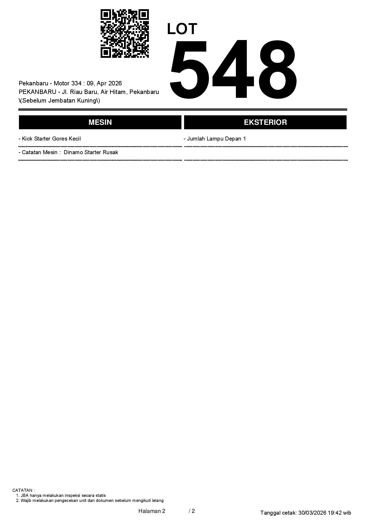 1. Peserta lelang wajib cek unit & dokumen