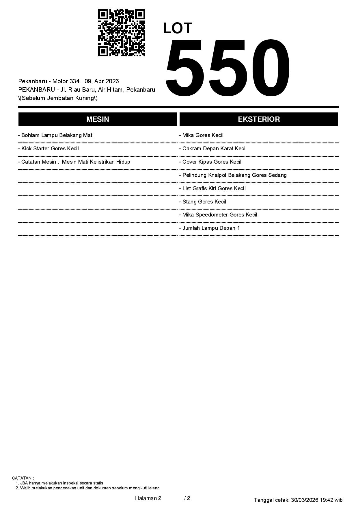 1. Peserta lelang wajib cek unit & dokumen