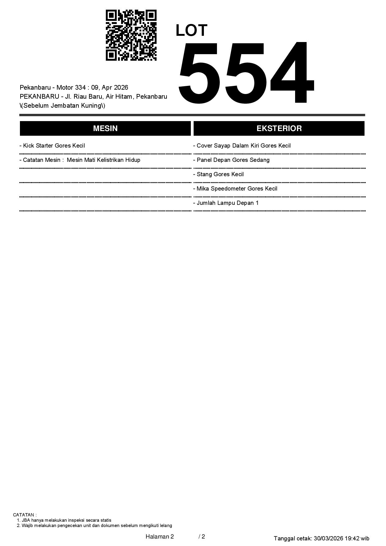 1. Peserta lelang wajib cek unit & dokumen