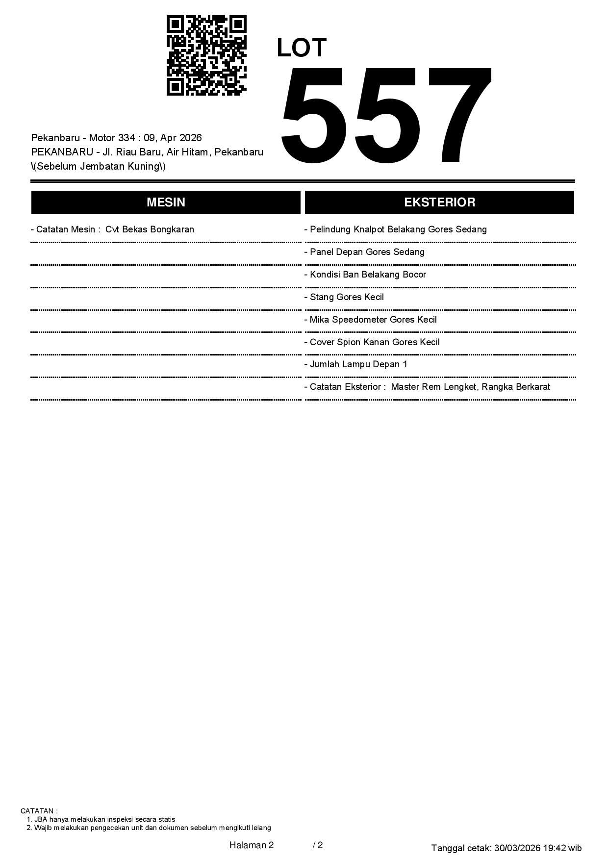 1. Peserta lelang wajib cek unit & dokumen