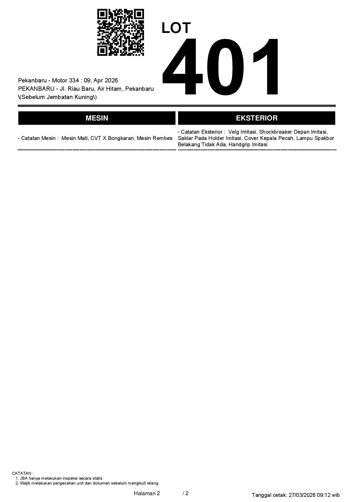 2. Peserta lelang wajib cek unit & dokumen