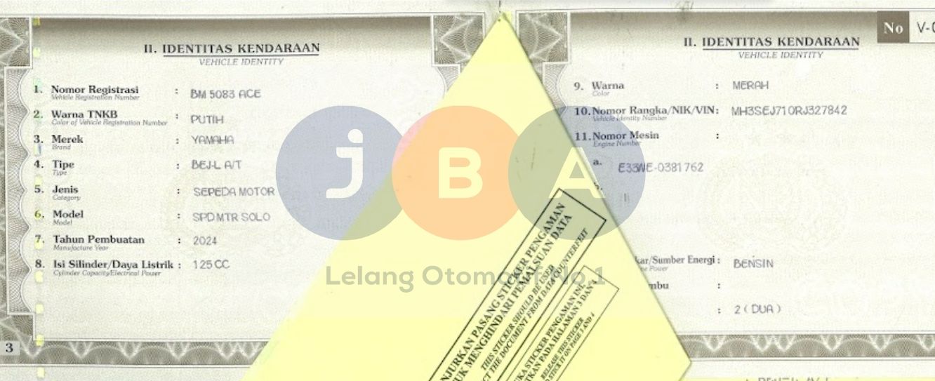 NOKA DI STNK KURANG JELAS//